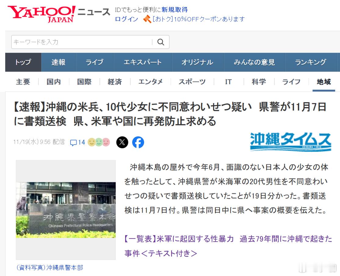 日本冲绳县(琉球)警方 11月7日已将一名20多岁的美国海军士兵移送检方,指控其涉嫌今年6月在冲绳本岛户外猥亵一名素不相识的日本女孩。截至今年十月底,冲绳(琉球)县内共查获82起美军人员、军人及其家属的刑事犯罪,这一数字已超过去年的73起,创下过去20年最高纪录。据不完全统计,1972年至2023年,驻日美军及相关人员共犯刑事案件约6200起,其中不乏杀人、抢劫、纵火等恶性案件。网上的日本人对中国人发言重拳出击,现实的日本人对驻日美军的犯罪唯唯诺诺!充分说明两件事:1、对付日本人要像美国学习;2、一定要早日将琉球人民从美日的魔爪下解放出来!