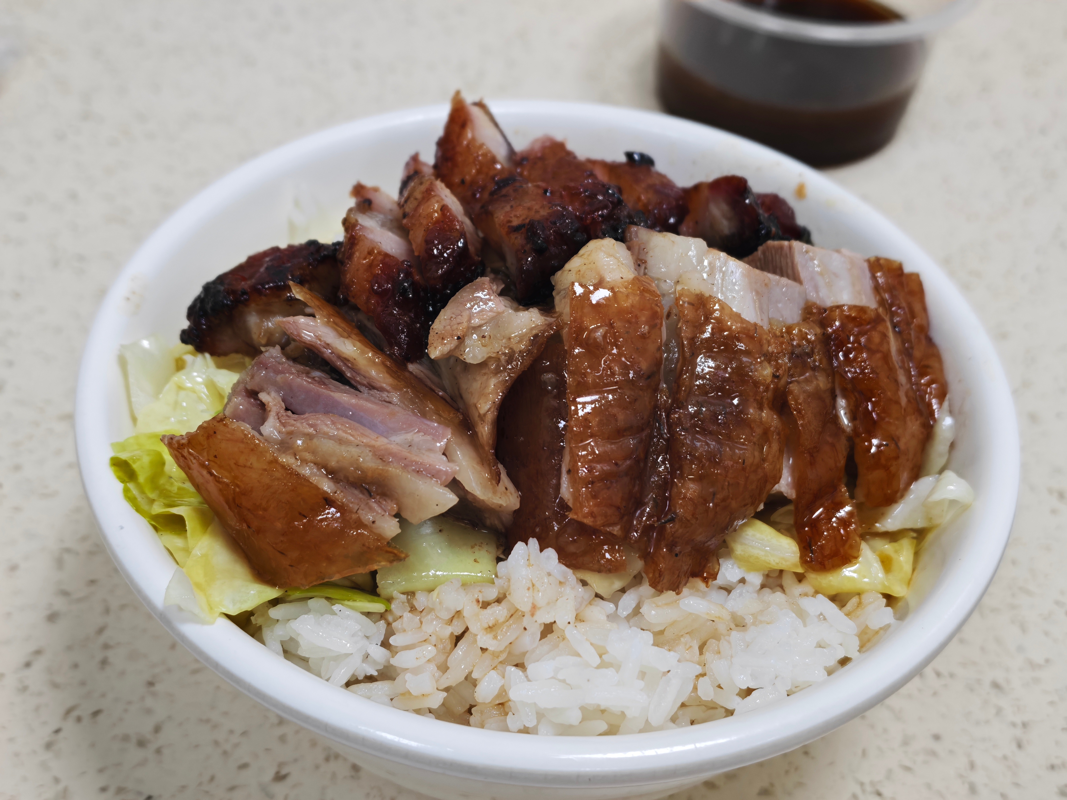 感受下东莞网红餐厅的招牌饭:烧鹅拼叉烧饭~周末来要排队排炸,一口下去还是贼香的