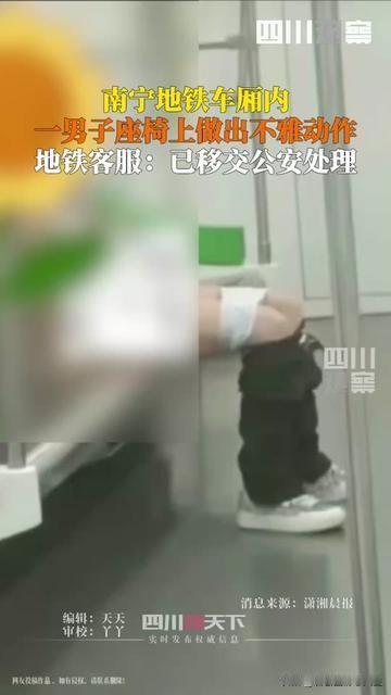 昨天南宁地铁的车厢里,有位妈妈吓得把刚放学的孩子脑袋按进怀里,你绝对猜不到,有人在满是乘客的地铁里,干了件突破底线的事! 11月15号的事,一男的当众做不雅动作,工作人员立刻上去拦,现在已经交地铁公安处理了。 咱们平时坐地铁,碰到大声外放的、占座的都皱眉头,可这种把隐私事摆台面上的,真刷新公共场合的下限!公共空间又不是你家卧室,连不影响别人的礼貌都没有? 最揪心的是车厢里还有小孩啊!要是孩子问“叔叔在干嘛”,家长得怎么解释?多亏工作人员反应快,不然这阴影得留多久? 你们坐地铁碰到过啥离谱的不文明行为?是忍了还是直接说?大家怎么看?
