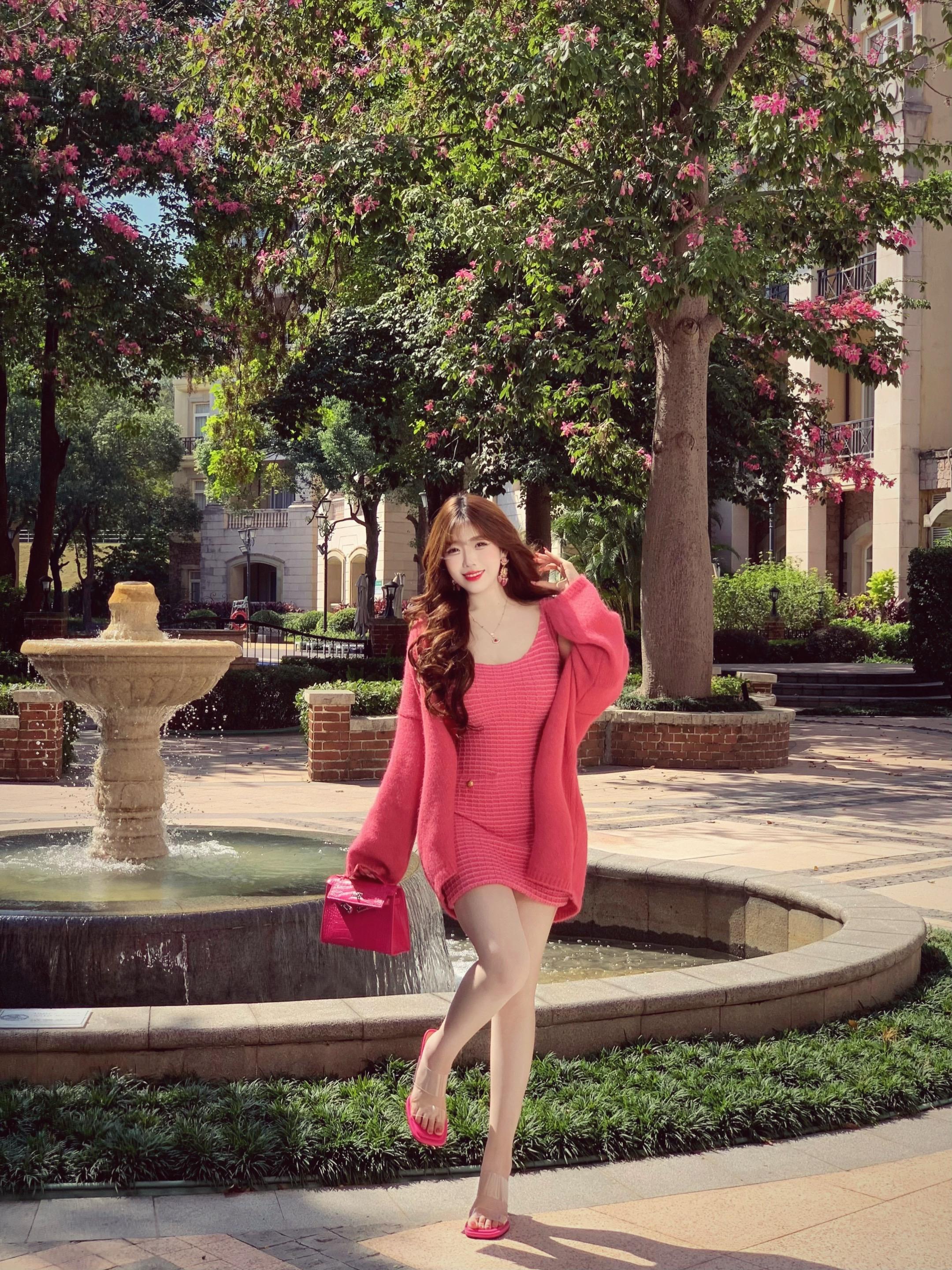 浅粉色穿搭分享看看我穿浅粉色毛衣的样子好看不好看?