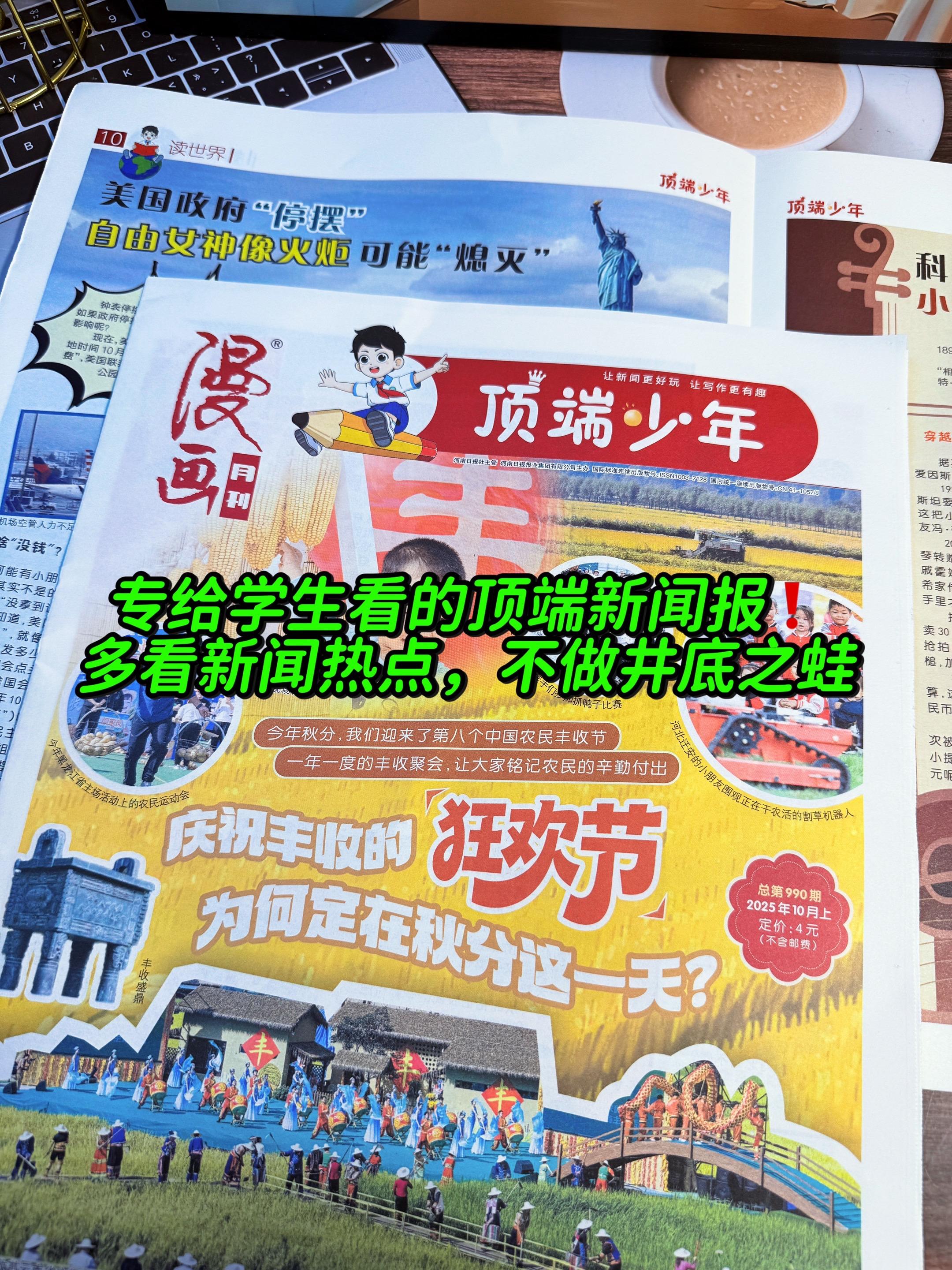 中小学都在读的杂志《顶端少年报》小学生读新闻,这份报纸就够了! 顶端少年报要不要订?看了就知道[黄金薯R]这里有孩子喜欢的有趣的新闻、好看的漫画,让孩子远离手机,爱上阅读!