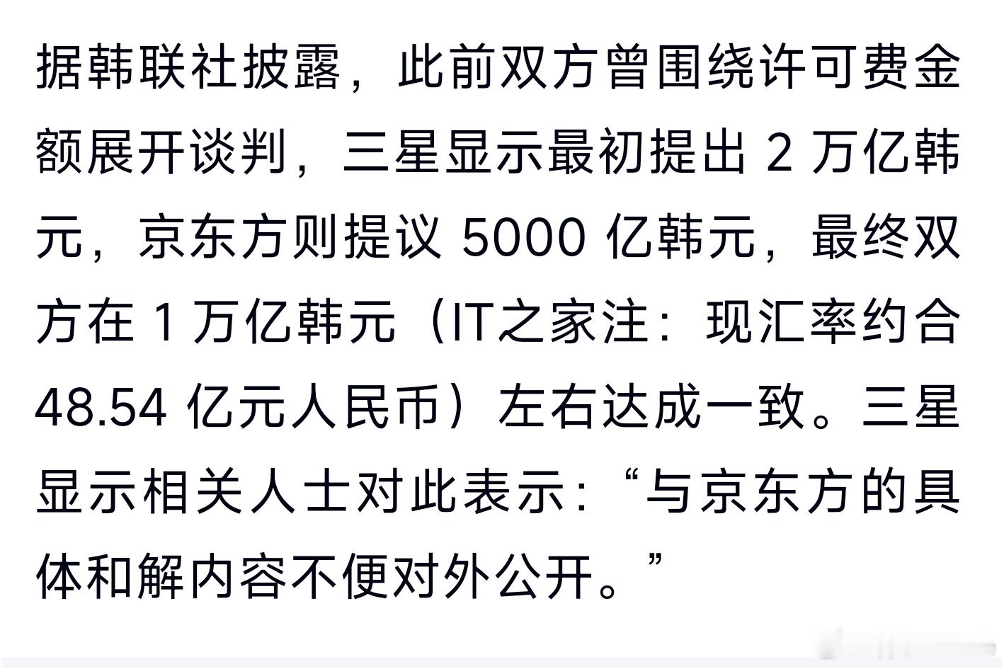 京东方和三星显示就OLED知识产权诉讼达成和解。三星赢得诉讼,京东方同意支付专利使用费,结束了近三年的专利和商业秘密纠纷。据韩联社披露,京东方最终向三星支付1万亿韩元左右(约合48.51亿人民币)的专利使用费,而三星最初提出的是2万亿韩元。此前,2022年12月,三星显示器对京东方提起版权侵权诉讼;2023年10月,三星显示器又对京东方提起商业秘密侵权诉讼。