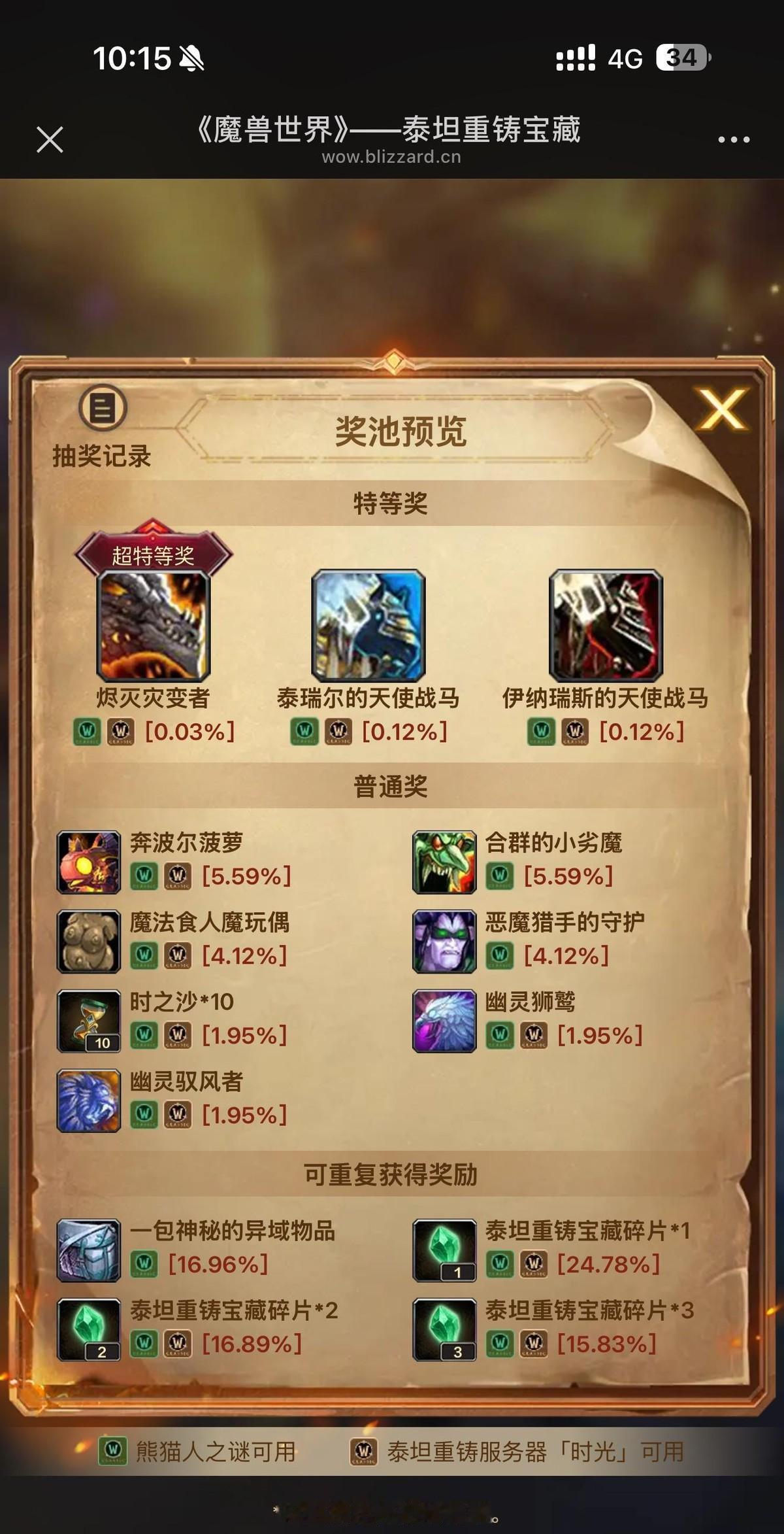 雷火今天把“泰坦重铸宝藏”塞进魔兽时光服,一百块一张票,抽机械泰坦坐骑。 我中午刷帖,满眼都是五百块打水漂的截图,主播连开十连,紫光闪到麻木,稀有坐骑连个影子都没。 官方说掉率透明,可没保底,玩家分两派,一边喊“经典IP变提款机”,一边晒星核幼龙喊真香。 我算了下,想稳拿坐骑得丢半个月工资,这哪是怀旧,是钱包怀旧。 晚上热搜挂到十八位,客服只回一句“会关注”,票照卖,坐骑照飞,老玩家边骂边充值,情怀被量化成概率,点卡年代一去不返。 氪金抽卡不新鲜,但把青春记忆标成价码,还是让人膈应。