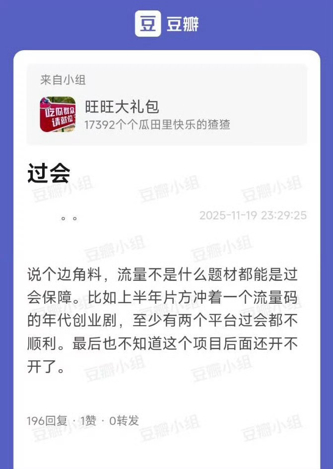爆年代创业剧《指间疯长》项目流产这个瓜的是鹅脂,大概是害得平台大亏特亏还要四处吹逼,鹅不想忍吧。天天吹成屌样,其实啥也不是。