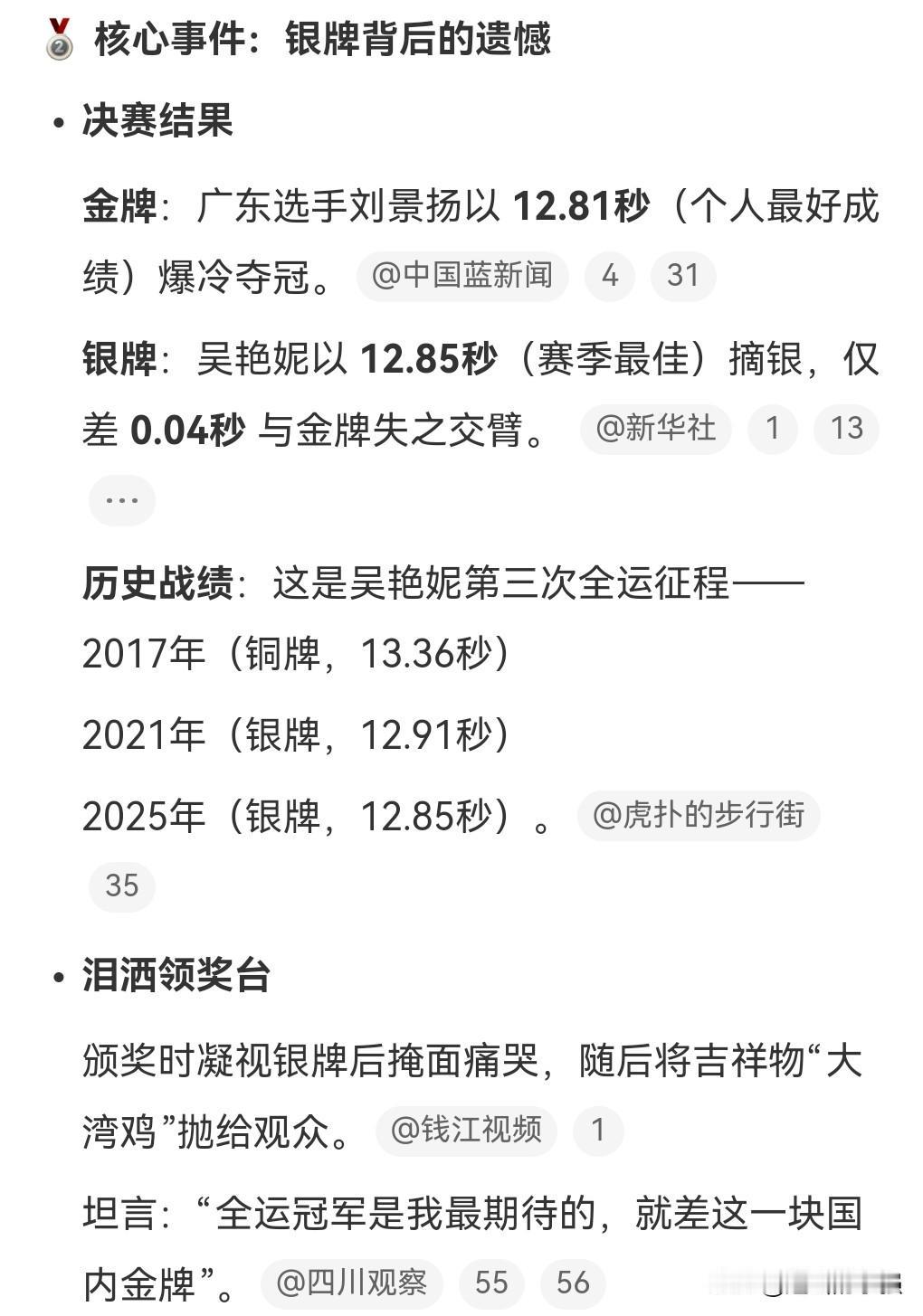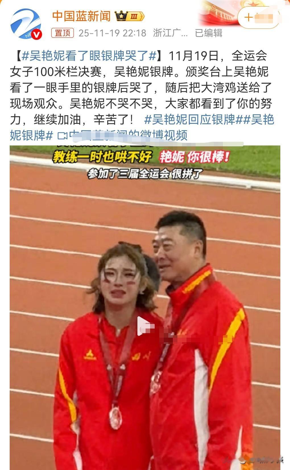 吴艳妮只拿了块银牌,所以她痛苦的哭了。 毕竟她准备拿这块金牌破国内纪录的。 只差了0.04秒,对她来说那肯定是相当可惜了。 所以才这么的伤心哭了,教练哄她也哄不好。 运动员是有花期的,青春饭的。 竞争压力是特别的大,一下就冒出一个新人来。