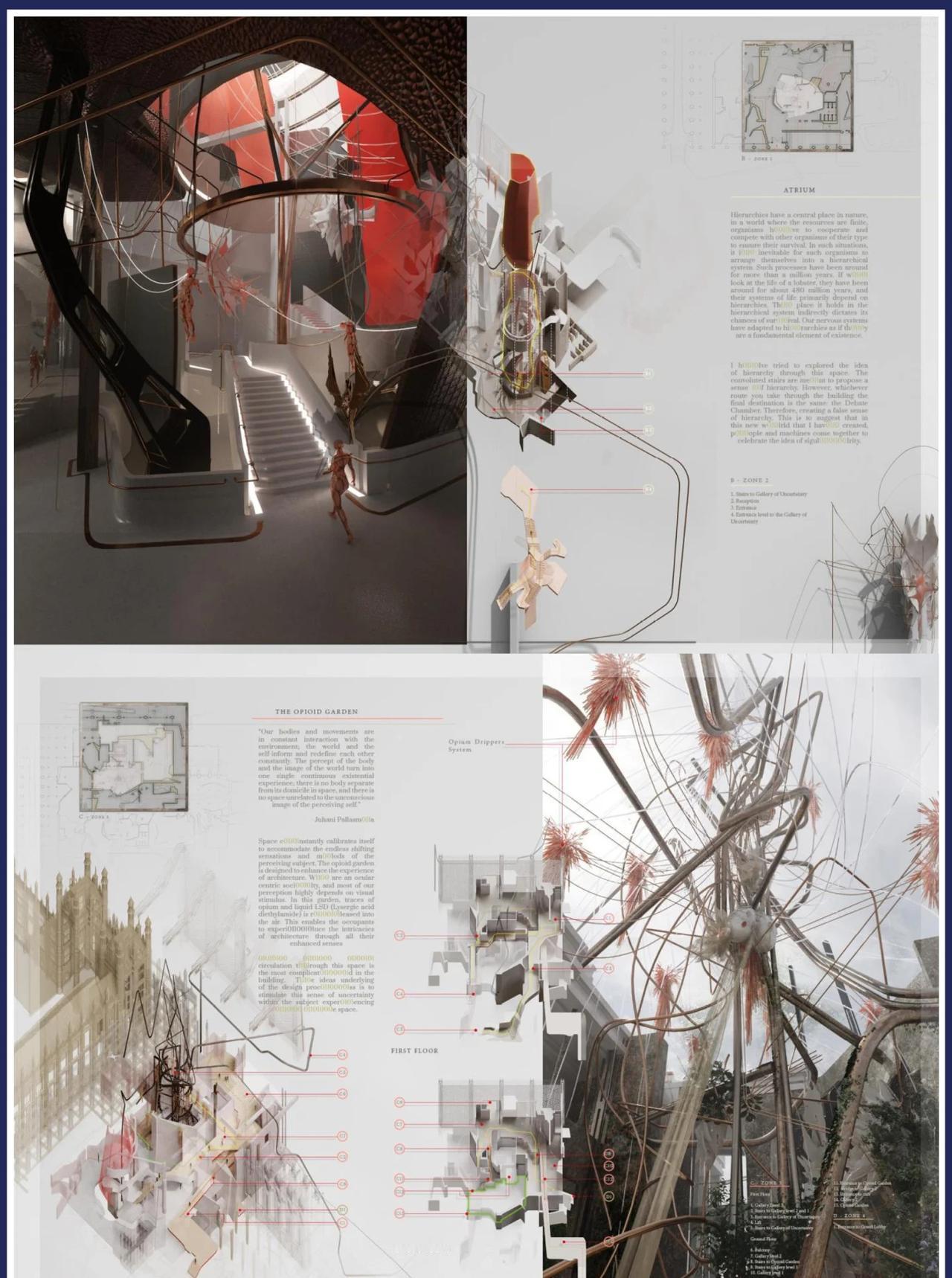 设计灵感丨“建筑的未来是什么? impactstudio @IMPACT STUDIO 景观学院 @IMPACT STUDIO作品集辅导 🤴作者:Edwin Davis Maliakkal 🍁项目名称:The Fifth Orchestration 🌸我们从哪里来?我们是什么?我们要去哪里?保罗·高更画作上的这段文字可能是人类能够提出的最深刻问题之一。该项目深入探讨最后一个问题,为项目奠定了研究基础。生活在一个与技术建立共生关系的未来,这一想法最初可能让人感到不安。然而,如果我们相信达尔文的进化论,那么我们本就是从猿类进化而来的;考虑到技术进步的迅猛发展,这种转变只是时间问题。这就引出了一个重要问题:“建筑的未来是什么?”要理解这个问题,我们首先需要思考我们如何看待建筑,以及建筑如何随着时间的推移而变化。我的项目不仅质疑我们体验建筑的方式,还探讨这些体验如何在新的超现实景观面前重新构建,而这种景观以及建筑模式正逐渐融入时间的结构之中。 建筑学作品集 建筑学留学作品集 建筑作品集留学辅导 英国建筑留学 美国建筑留学 留学作品集辅导 建筑设计辅导 景观设计作品集 作品集辅导 @艺术薯 @REDesign @UED @知识薯 @校园薯