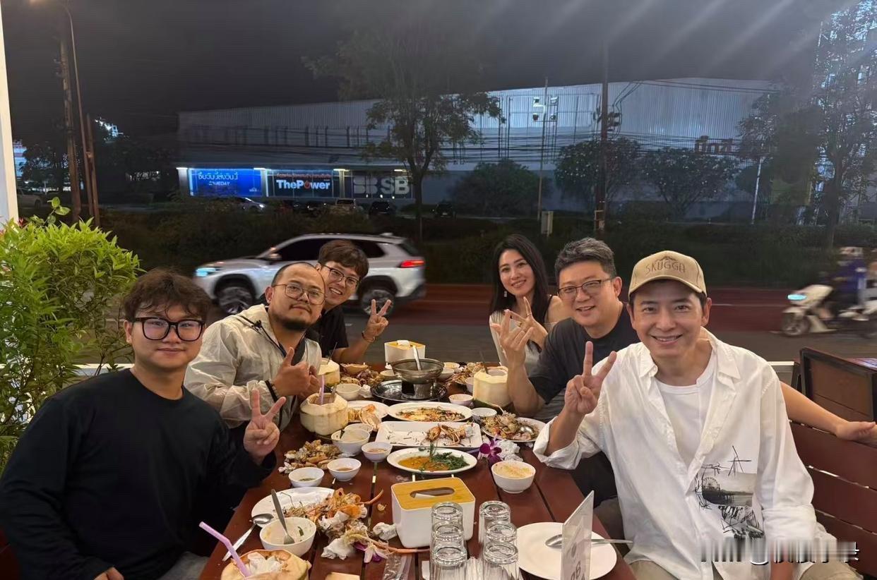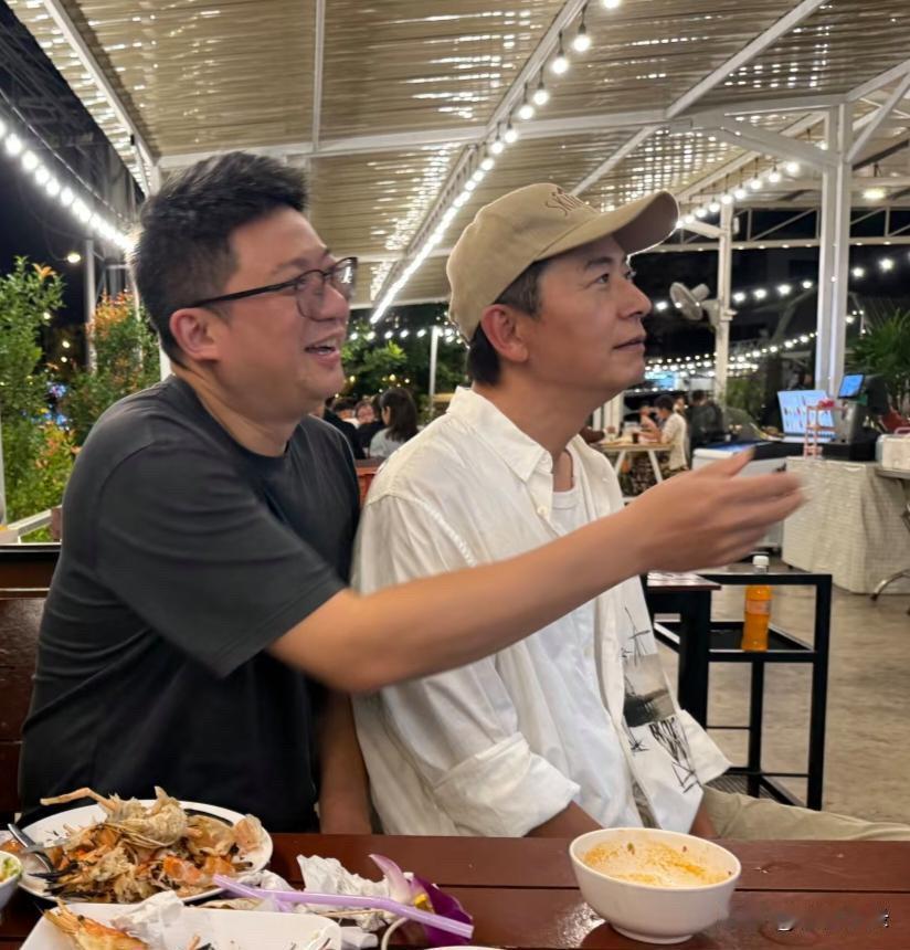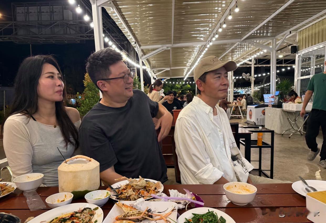 55岁戴军和朋友在泰国餐厅喝酒聚餐,点了满满一大桌海鲜,看起来好开心!他的状态太好了,身材没有发福油腻,外表很显年轻![得意][得意]