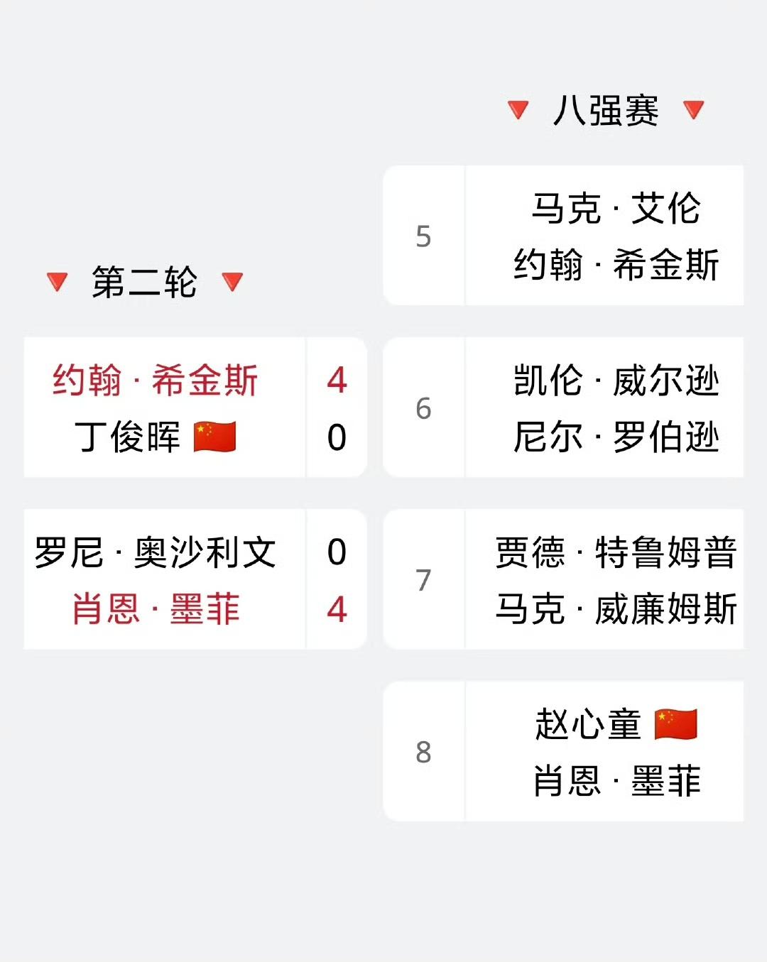 七位世界冠军争四强! 11月20日,斯诺克利雅得狂欢季锦标赛1/4决赛,七位世界冠军和卫冕冠军马克·艾伦将展开激烈的竞争。赛程如下: 20日22点,凯伦·威尔逊对阵尼尔·罗伯逊 20日23点,约翰·希金斯对阵马克·艾伦 21日3点,贾德·特鲁姆普对阵马克·威廉姆斯 21日4点,赵心童对阵肖恩·墨菲 七局四胜赛制,止步八强5万英镑奖金,晋级四强7.5万英镑奖金。 冠军奖金25万英镑、亚军奖金12.5万英镑。