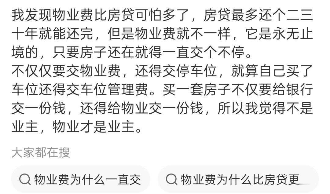 为什么大家都不愿意交物业费? 按理来说物业负责打扫卫生,维护小区安全,辅助业主有个更好的生活环境。 这个钱,我们也愿意去花这个钱。 但可惜的是就怕遇到不负责任的物业,天天跟业主作对,小区安全管理不负责,卫生打扫不及时,不能为业主去考虑。 这种前提下,谁也不想交吧!虽然说钱不多就几百元,出去吃顿饭都不仅这点。