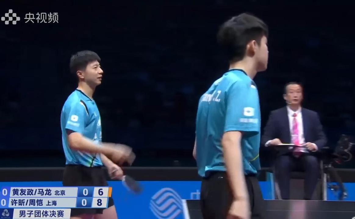 突发!上海队请求鹰眼了! 男团决赛开局就是王炸, 两队两大开局, 马龙爆冲许昕, 北京队6:2领先 随后周恺爆冲黄友政, 8:6反超, 此时一个擦边, 两队都认为自己赢了, 裁判判给北京队, 上海队请求了鹰眼, 结果挑战成功, 上海队赢了, 但是上海队火热手感没有了, 许昕连续失误, 北京队11:7赢了