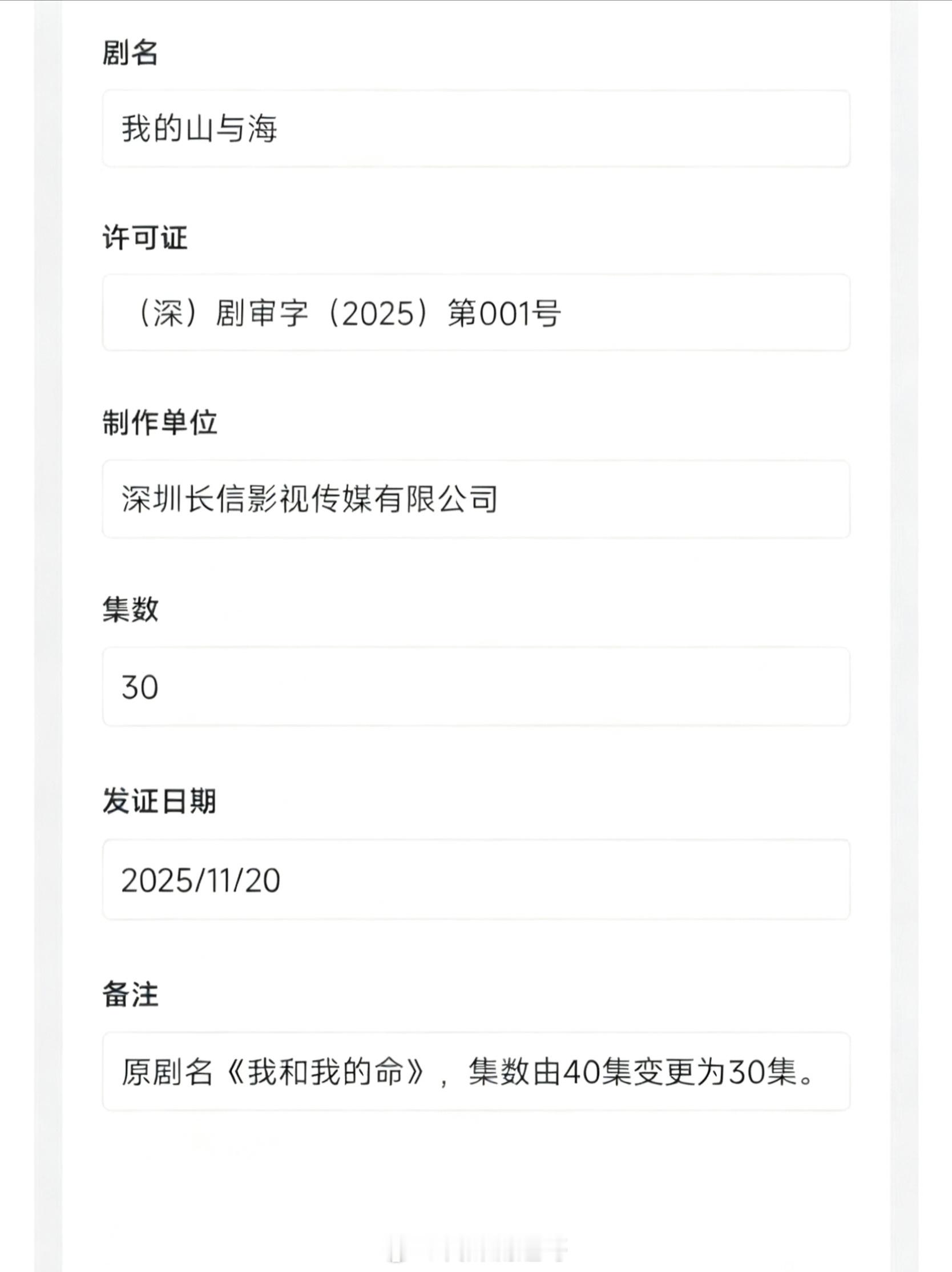 谭松韵《我的山与海》已于今日过审下证,集数又40集变更为30集