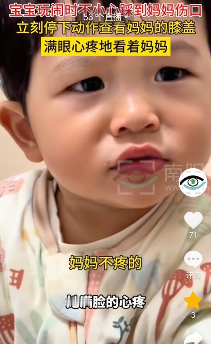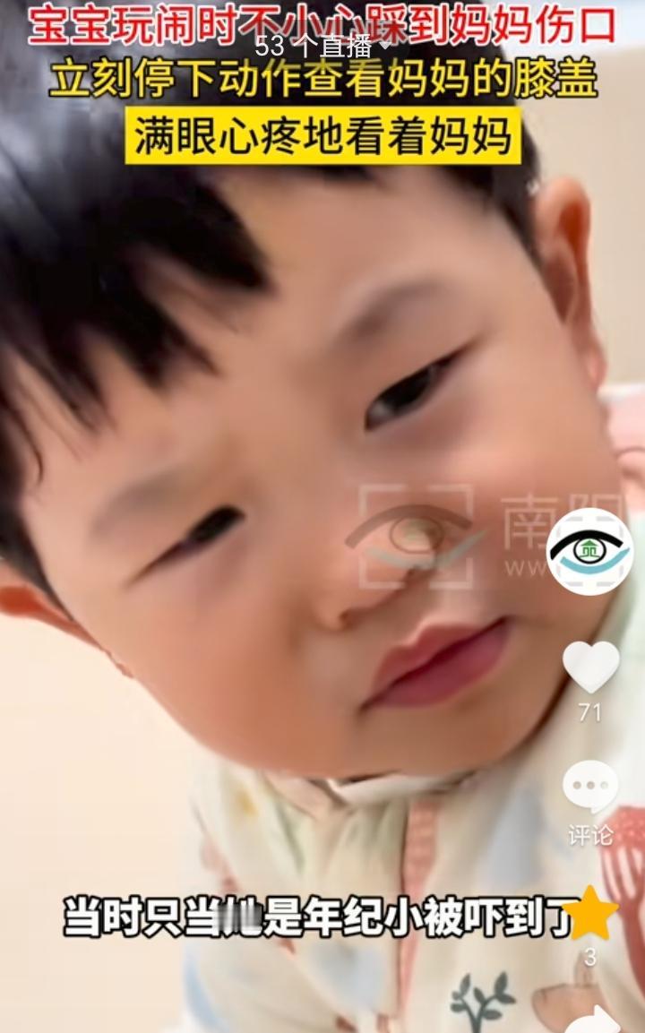 这是来报恩的!湖北武汉,妈妈带宝宝露营自己不小心摔倒,宝宝当场就急的大哭,当时妈妈还以为是宝宝年纪小被吓到了,后来两人在床上玩,宝宝不小心踩到妈妈摔伤的地方,她立刻停下动作查看妈妈膝盖,妈妈连忙说妈妈不疼,看到妈妈的伤处宝宝也是满脸的心疼。 像她这么小的宝宝能知道什么?然而这个宝宝这么小就知道心疼妈妈,以后肯定也是非常孝顺父母的好孩子,可能这宝宝就是来报恩的。 多行善事就会得到福报,可能女子一家福泽深厚因此得到上天眷顾,所以才降下了来报恩的宝宝。
