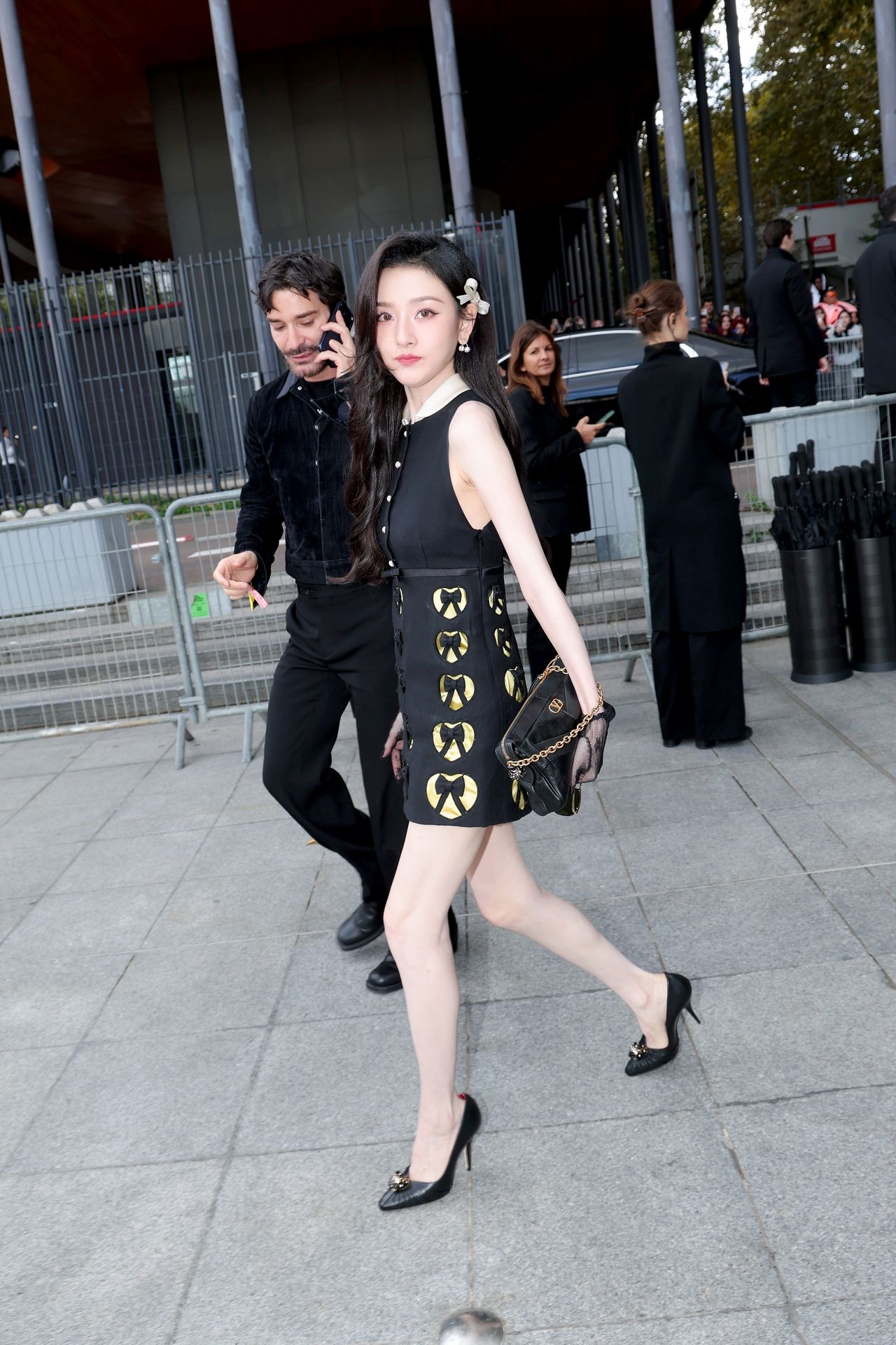 知名的维密天使模特卡莉克劳斯,黑色丝绒长裙套装穿搭,夜间出行街拍美照。...