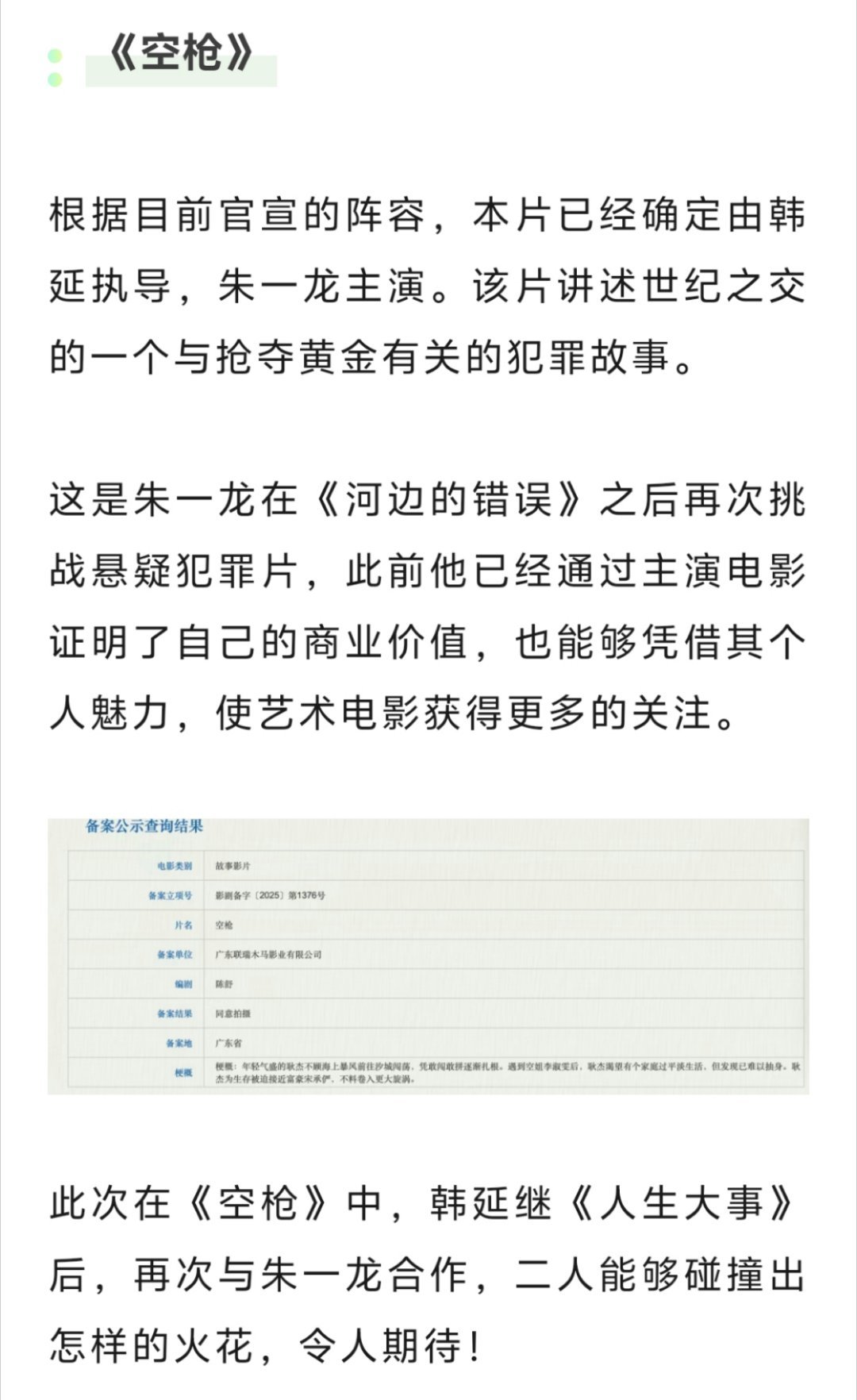 期待一番巨男主,美人影帝朱一龙新电影《空枪》!