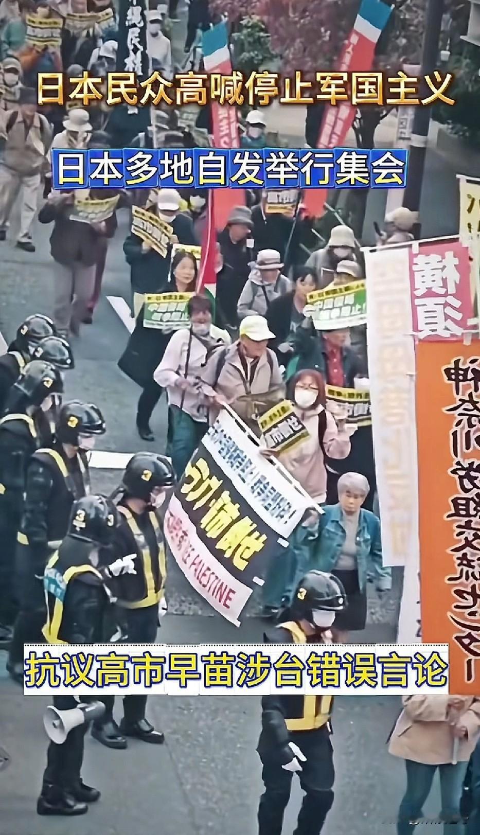 日本游行再升级![耶] 高市早苗彻底慌了,日本国内游行人数变多,游行地方变多,已形成全国性抗议浪潮。除了东京以外,后续逐步蔓延至京都、冲绳、广岛、大阪等多地,涵盖关西、关东及西南岛屿区域,覆盖范围不断拓宽。 11月20日,京都和东京分别爆发大规模抗议游行活动。京都市役所前,民众聚集要求首相高市早苗撤回涉台错误言论。 抗议者手持“不要煽动战争”标语,反对其考虑修改“无核三原则”的动向,强调日本应反省历史,与中国友好相处东京议会前,来自东京、冲绳等地的民众抗议边野古基地建设和西南诸岛军备扩张。 参与者警告军事化举措将令冲绳首当其冲,危及地区和平稳定。两场游行共同发出“要和平不要对抗,要对话不要战争”的清晰呼声。日本政府不应忽视国内民众对和平的坚定诉求。 俗话说的好“得民心者得天下”,高市早苗这种行为纯属玩火自焚,这不是结束而是刚刚开始,高市早苗结局堪忧,日本未来堪忧。日本右翼 高巿早苗 东京民众抗议 上街游行 高市早苗的言论为何备受争议 高市早苗“可能成为日本存亡危机”