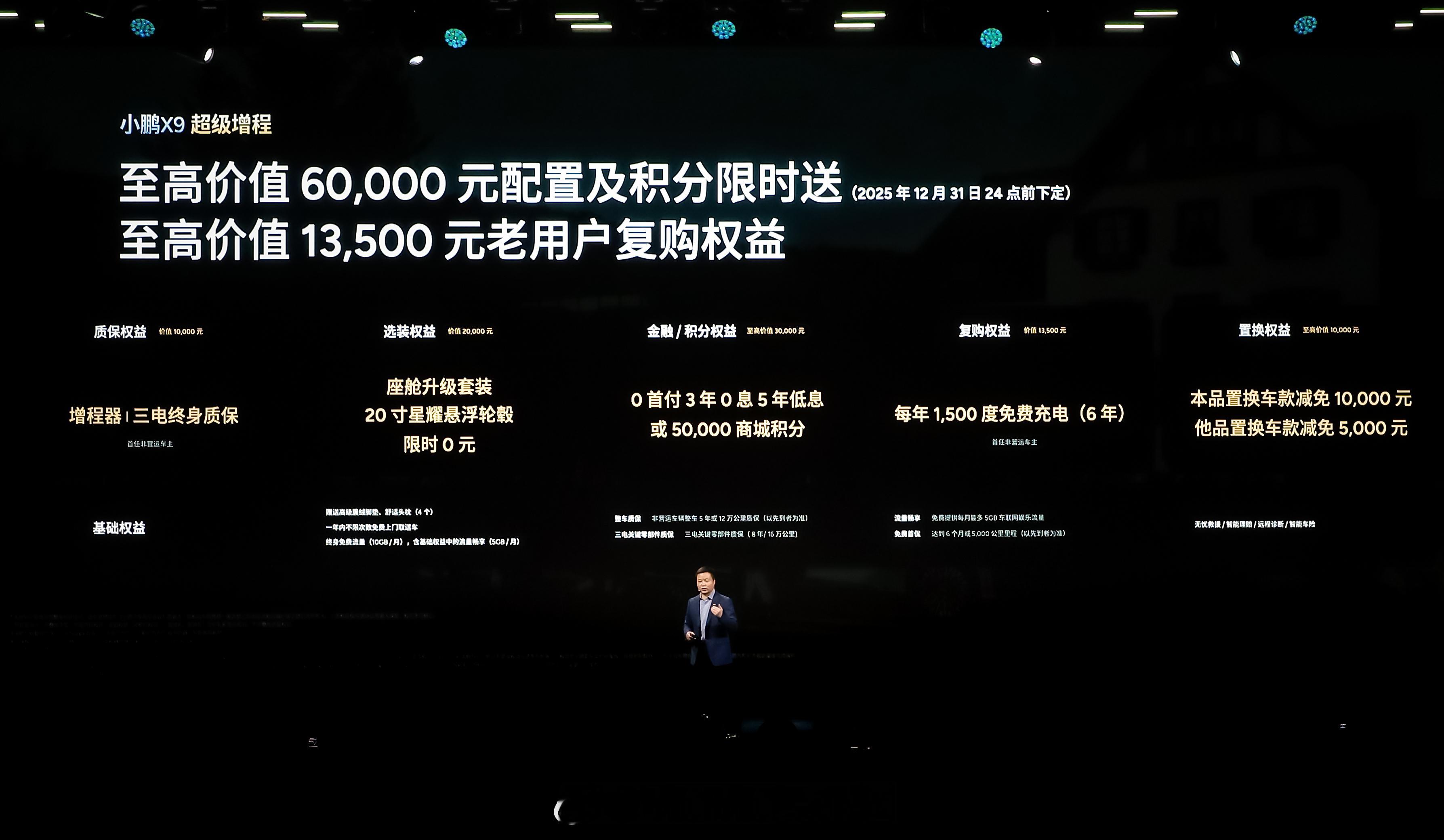 小鹏X9超级增程30.98万起!拥有1602公里的全球最长续航,452公里的纯电续航~复购首任车主每年免费1500度电(前六年),这个价格出来应该有不少打家庭用车的品牌头疼了