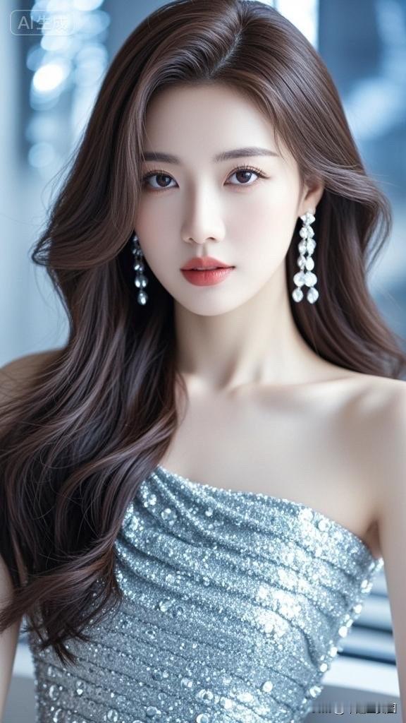 优雅女神,闪闪发光的银色礼服,惊艳全场!💃✨