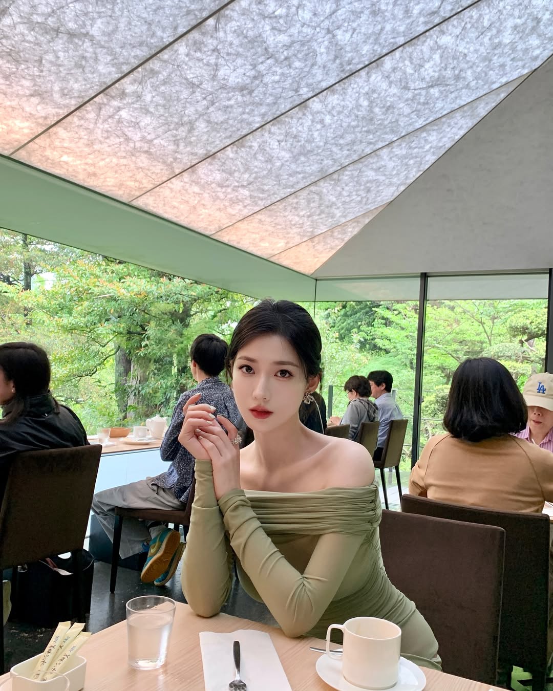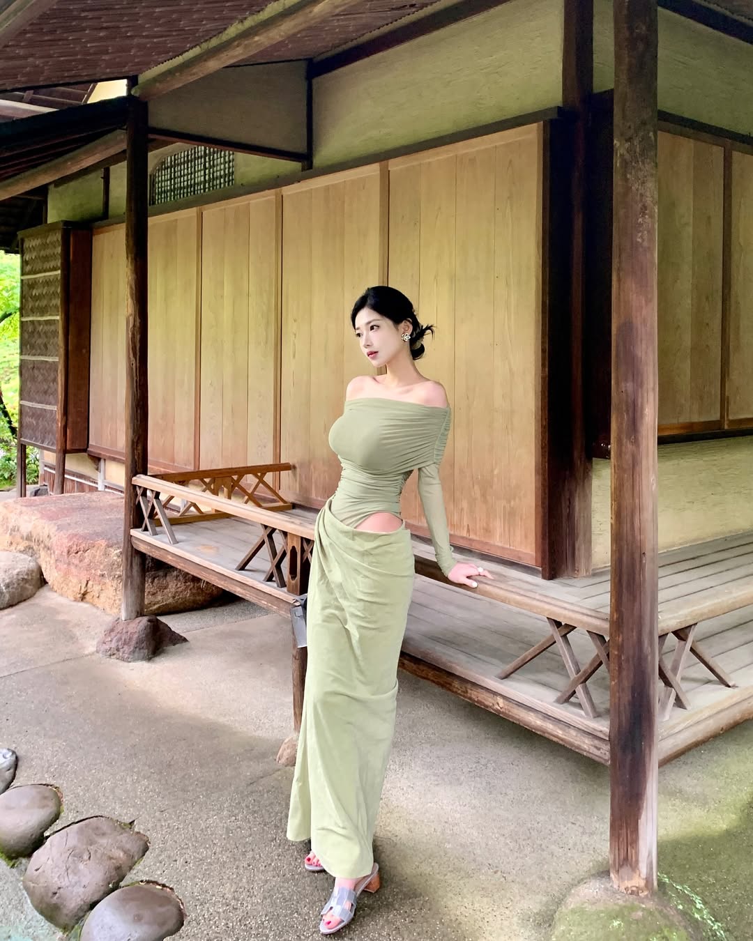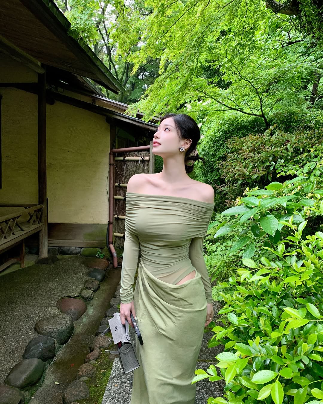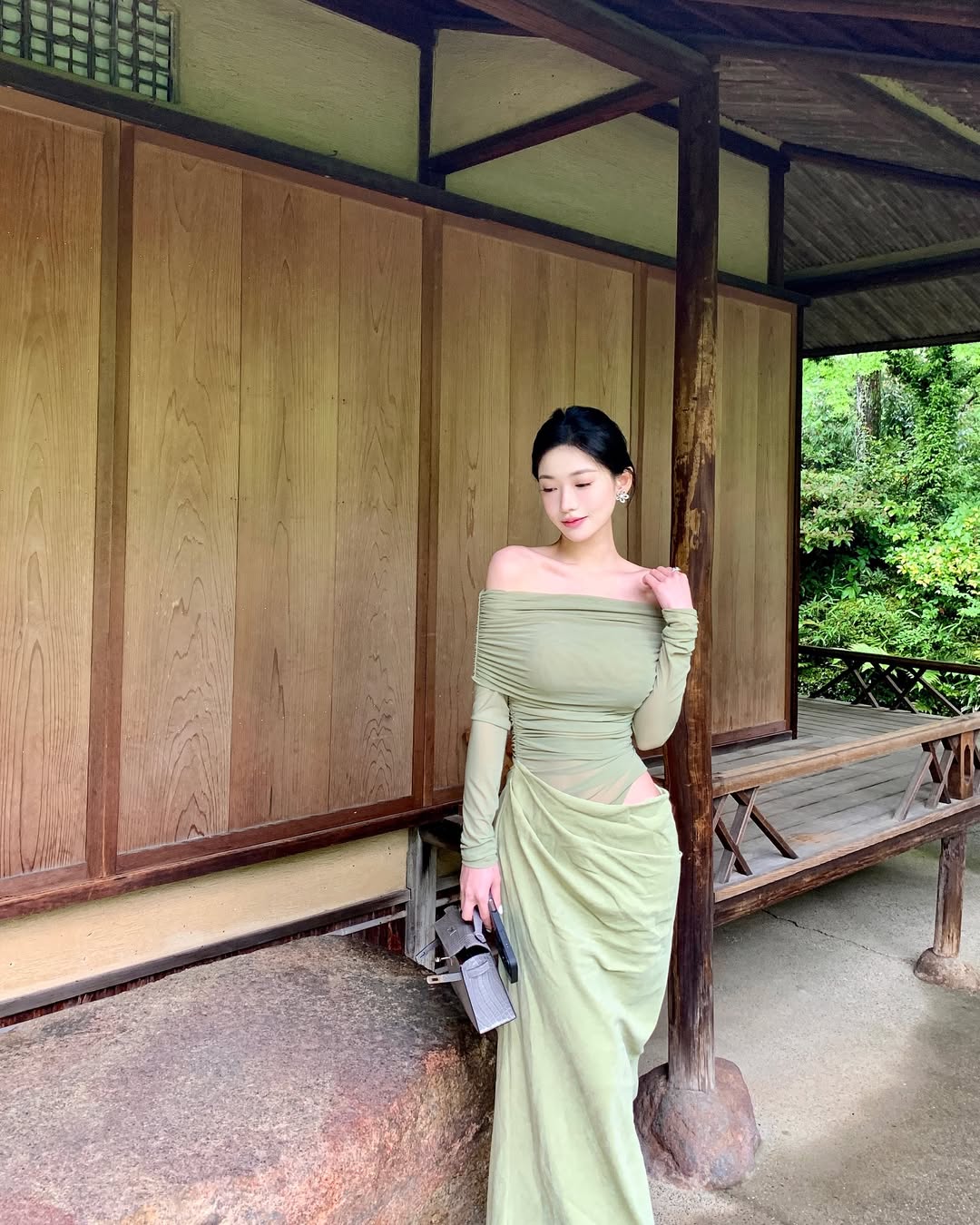 模特小姐姐一袭浅绿色露肩长裙,优雅与时尚并存。露肩设计展露迷人肩颈线,修身剪裁完美勾勒曼妙身姿,腰间的独特褶皱更添层次感。搭配精致耳饰与手拿包,从餐厅到林间,每一幕都尽显从容气质。她的颜值与身材相得益彰,穿搭在清新与优雅间自如切换,宛如行走的时尚画报,诠释着高阶氛围感穿搭的魅力,让人一眼沦陷。