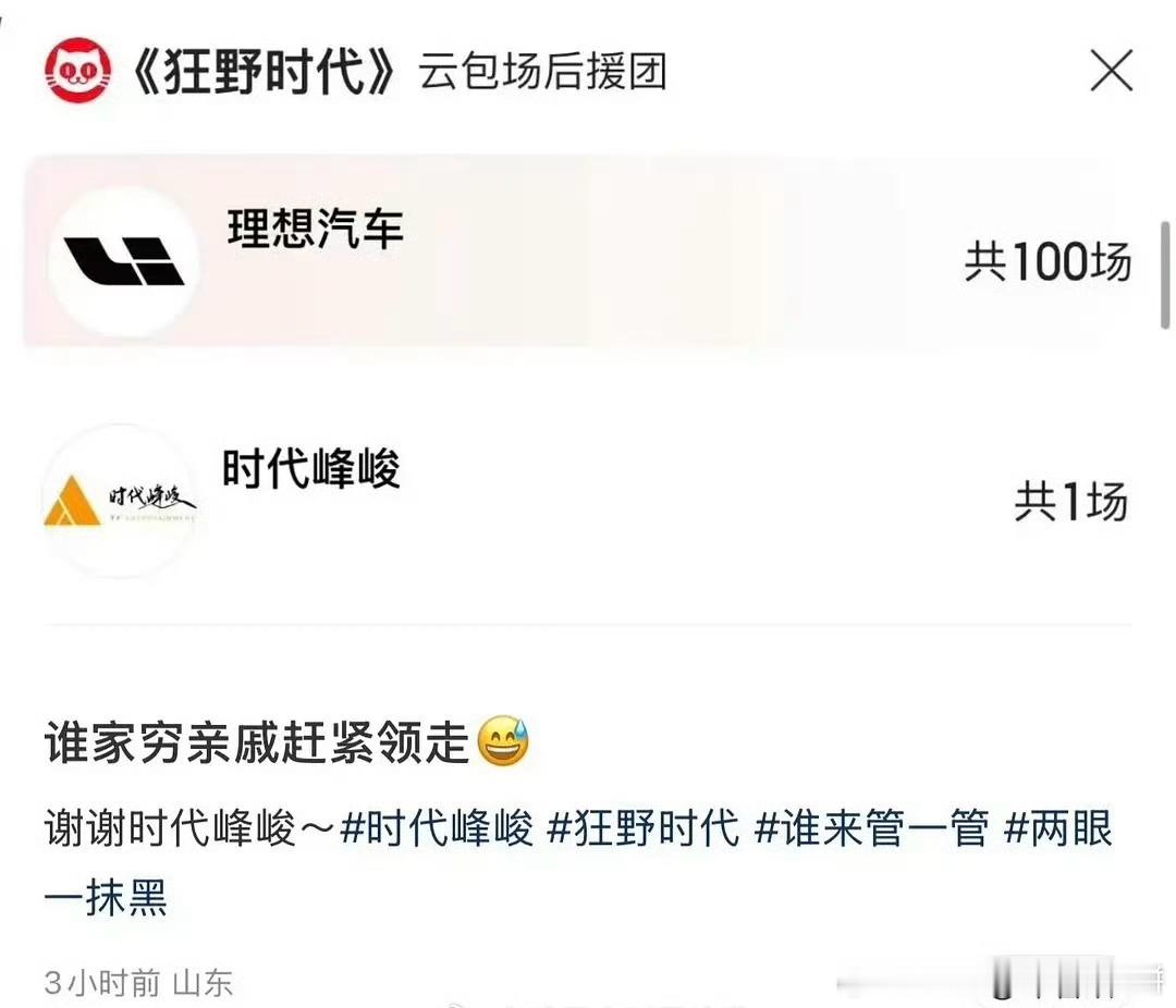时代峰峻就给易烊千玺的狂野时代包了一场啊(这么大公司,是不是抠了点