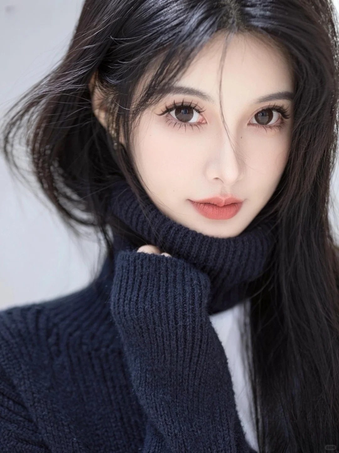眉形是远山含雾款,眉色清淡如墨染轻烟,不描而黛的线条顺着眼型自然舒展,眉峰处微微收尖,似藏着几分不食人间烟火的清寂,眉梢垂落时又悄悄揉进一丝柔和。