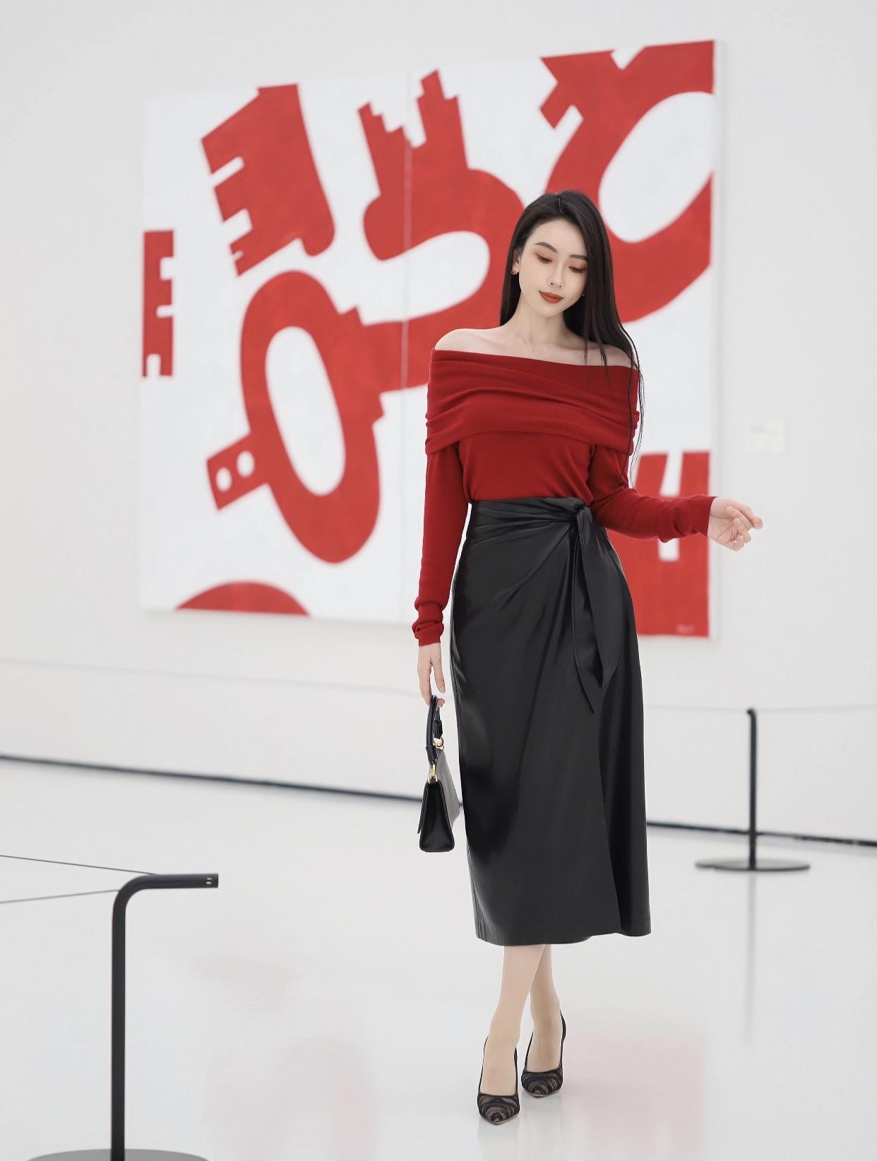 分享你见闻过的绝色美人!优雅红黑撞色,时尚穿搭指南