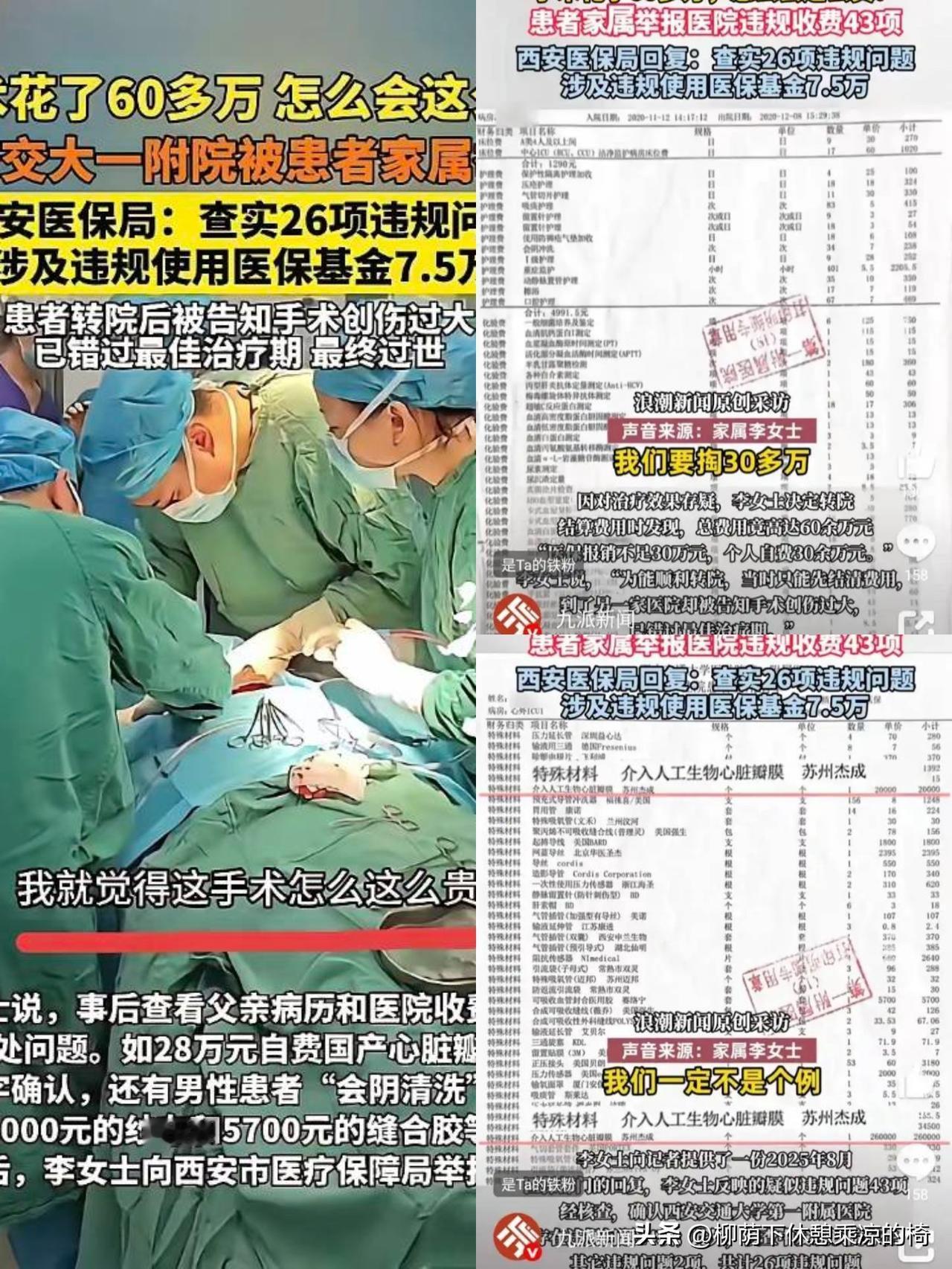 男性手术居然用“会阴清洗”? 来看看这医院多少猫腻! 西安李女士给父亲治病的28万账单里,自费的国产心脏瓣膜没让家属签字就用了,男性患者的收费清单里赫然出现“会阴清洗”产品,还有近6000元的纱布、5700元的缝合胶,这哪是治病收费,分明是把患者当“提款机”啊! 医院收费不是一笔糊涂账,每一分钱都该明明白白,可这些明显不合逻辑的收费项目,暴露的是个别医疗机构的监管漏洞和逐利私心。患者家属已经在为治病心力交瘁,还要提防这种“隐形消费”,实在太寒心了!医疗信任是底线,一旦被这种乱收费行为透支,受伤的不仅是患者,更是整个医疗行业的公信力。 希望相关部门能严查到底,给患者家属一个公道,也该好好整治下医疗收费乱象了心脏手术费用 心脏手术费用 心脏瓣膜手术 心脏瓣膜 心脏瓣膜术 瓣膜介入治疗 瓣膜检查 微创介入瓣膜