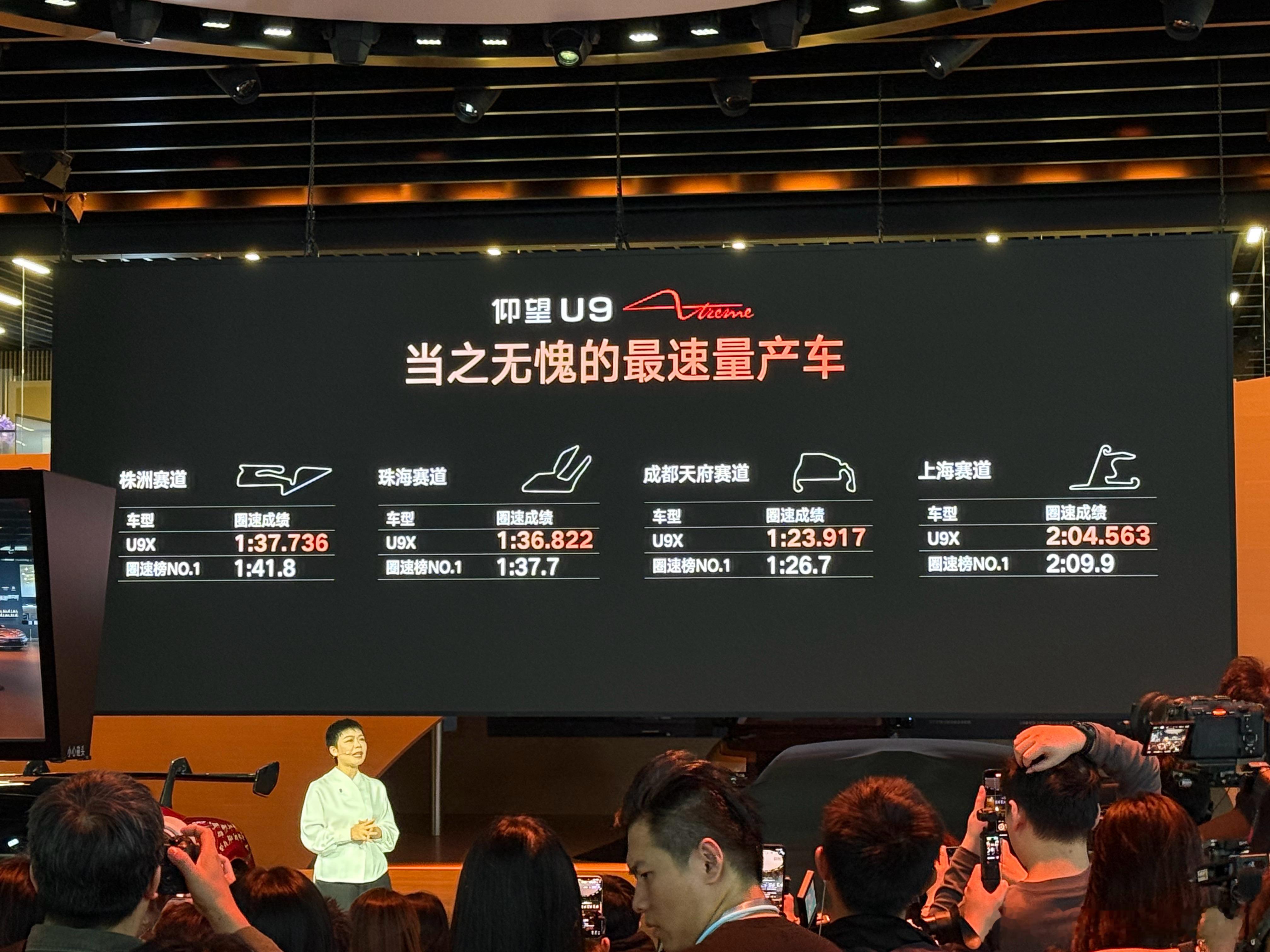 仰望U9X刷新国内「上海、成都、珠海、株洲」四大赛道圈速纪录上海:2′04″563成都:1′23″917珠海:1′36″822株洲:1′37″736此前这四条赛道量产车圈速榜榜首均为小米SU7 Ultra,仰望U9X将圈速分别提升约:5.4s、2.8s、0.9s、4.1s仰望U9最早在上赛的圈速是2′17″65,U9X将成绩提高了超13s,并且这还是在雨天的圈速成绩,天气良好成绩还能更快仰望U9X,上赛、成都、珠海、株洲四条赛道全部都是最速量产车