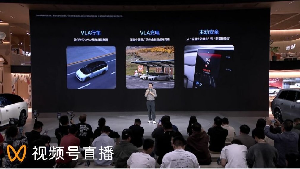 听了下理想在广州车展的发布会,分享一下重点。1️⃣VLA 的下个版本增强了强化学习,横向控制会更好。2️⃣理想终于把「无缝充电」拿出来讲了。这个必须自建超充站和很强的智驾能力两者融合才做得到,官方叫 VLA 充电。除了手动充电,需要上龙门架机器人。其他从出发,进园区,降地锁、泊入、驶出都完全自动化了。3️⃣「追尾防御性 AES」,当有后车追尾风险时,AES 可以适时自动避让,这个应该是行业首发。4️⃣智能换新版的 Ad Pro 支持城市 NOA 了。虽然征程5跟征程6的算力都是128Tops,不过显然在运行效率上有差别,所以只支持智能焕新版