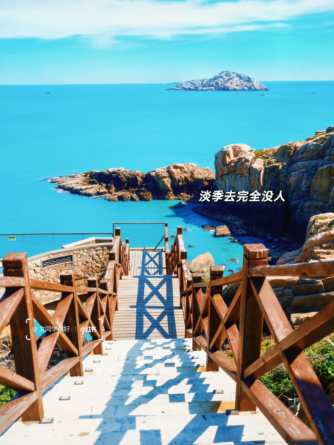 沿着木质栈道环绕海岛步行,还可以看到悬崖灯塔,还有海上石林
