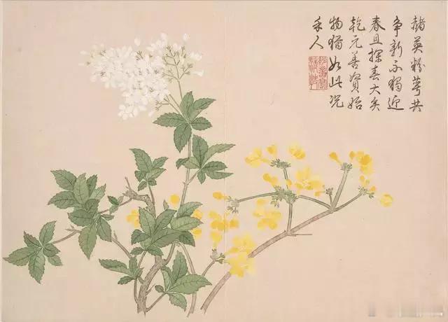 钱维城《山水花鸟册》。钱维城,清朝画家,钱维城从小就特别喜爱绘画,开始是从自己族里的祖母陈书那里学习画写意折枝花果、随类赋形、勾描渲染、气联意合、整体协调。后来拜了当时著名的画家董邦达学习画山水。所画山水,山势逶迤,流泉飞泻,烟霭飘浮,水光荡漾。