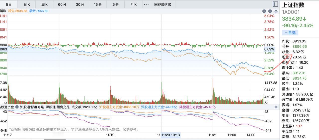 本周股市跌了200多点原因没有那么简单!本次股市下跌是多个利空叠加导致的暴跌,这样的大跌很伤人,大部分的股民是亏损的!本次下跌可以说是内忧外困导致的! 今天股市大跌的诱因是美国股市下跌,中资股领跌,这其中应该有政治上的原因,也有美国降息预期破灭的原因。 其次是中日之间的紧张局势,这个事情在本周前三天就应该减弱了,但是由于日本态度强硬,事件发酵导致资本市场对不确定性的担忧。 最后是关键,a股今年以来大量的股东减持,同时ipo一个接一个,一个比一个大,如果是在熊市,这样的ipo是利空,但是在今年却变成了利好,但是市场的赢弱很难改变,当大家都在等新ipo盛筵的时候,结果迎来的是当头一棒,这样的情况说明,哪怕是4000点,我国的股市也是脆弱的! 最后,牛市应该是政策和资金面推动的,是大量投资者对股市有信心带来大量投资,而不是依靠量化交易来推动,今天这一跌给今年的4000点带来很大压力,如果12月初不能快速收复4000点,4000点又可能成为眼前的高山!