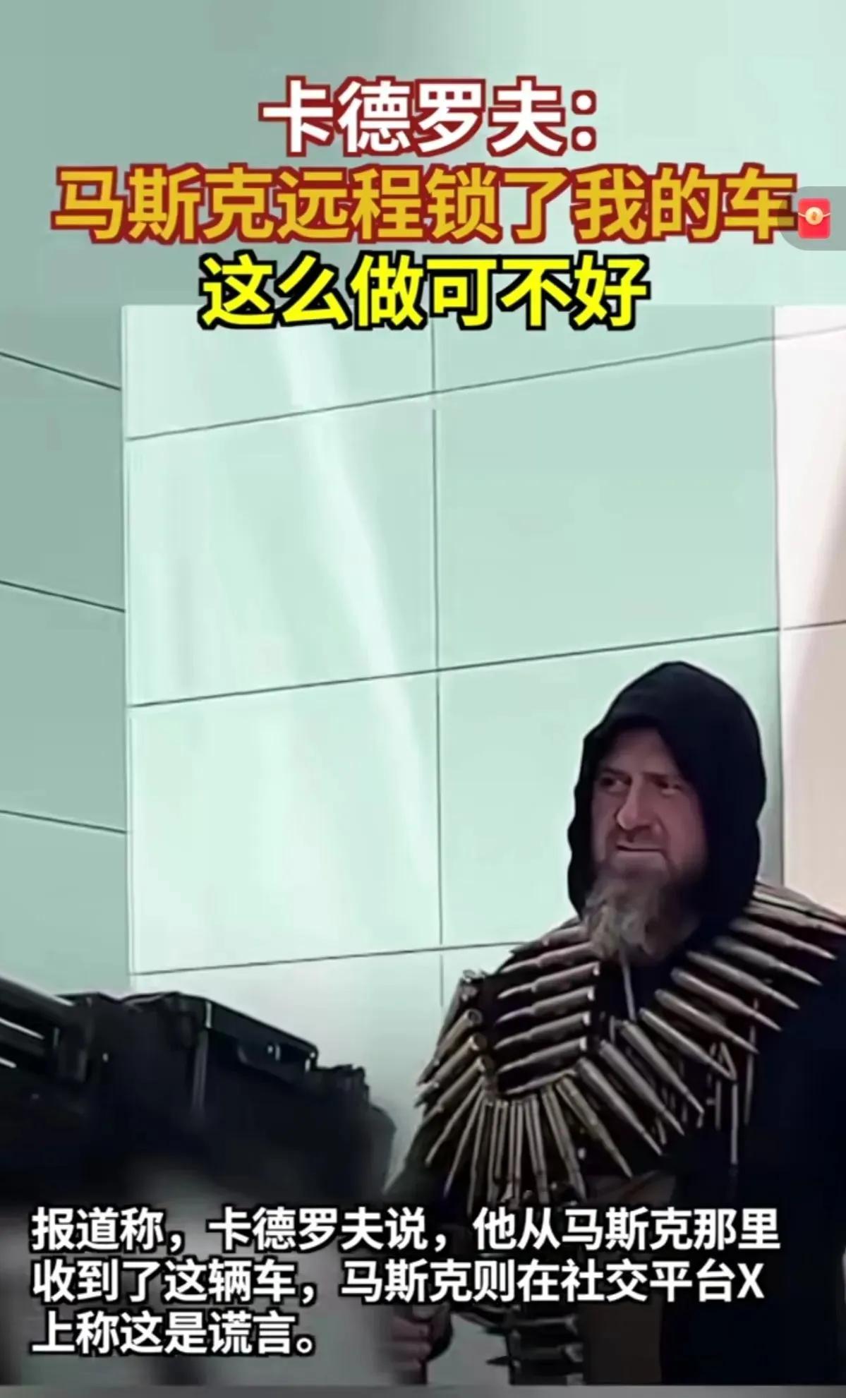 卡德罗夫:马斯克远程锁了我的车! 19号卡德罗夫抱怨说 马斯克送给他的一辆特斯拉赛博越野车 被远程锁住了 最后他只好把这匹“铁马”给拖走 但另外几辆送到战场的特斯拉 还能正常使用 虽然马斯克否认曾送车给小卡 但这回应怕是平息不了怀疑啊 国内的特斯拉用户可真要睡不着觉了 黎巴嫩的爆炸声还没消散呢 远程锁车又来了 今年3月的时候 美国全国广播公司曾采访 美国商务部长雷蒙多 她声称: 想象一下,比如有数百万辆中国汽车 在美国的道路上行驶 每时每刻都在收集数百万美国人的数据, 然后把这些数据传回中国…… 而北京可以让它们同时熄火 …… 果然 美国人的担心总是有现实理由的 再不好意思说,美国的指责毫无依据了 因为美国人已经这么干过了[狗头] 美国: 我都这么干好几回了 凭什么让我相信你不会这么干![捂脸] 如何评价特斯拉 卡德罗夫:马斯克远程锁了我的车