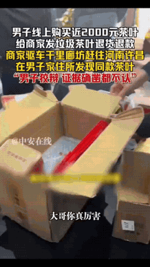 “白嫖就不能惯着!”河南许昌,一男子网购买2000元茶叶,谁知收到货以后直接选择退货,女商家查看退回的茶叶,发现茶叶 被调换成50元一斤的垃圾茶,附赠的定制茶杯也凭空消失,随后第一时间联系男子,没想到对方不仅一口否认调包,还反咬指责她想讹钱,甚至还放话,给两百万才愿意出面说清楚。一气之下,没想到她做了这么一个大胆的决定! 七天无理由退货是给消费者的保障,不是给骗子的“白嫖通行证”。 这位廊坊女商家早就留了心眼,发货时给茶叶编号、称重录像,被坑后直接带着证据链,驱车700多公里跨省维权,这份硬气真该给满分。 现在平台也在升级规则,异常退货能一键拒退,恶意账号会被限制,可见白嫖根本走不通。 商家的较真不是小题大做,而是在守护整个网购环境的诚信底线——你贪的这点小便宜,可能要付出拘 留的代价。