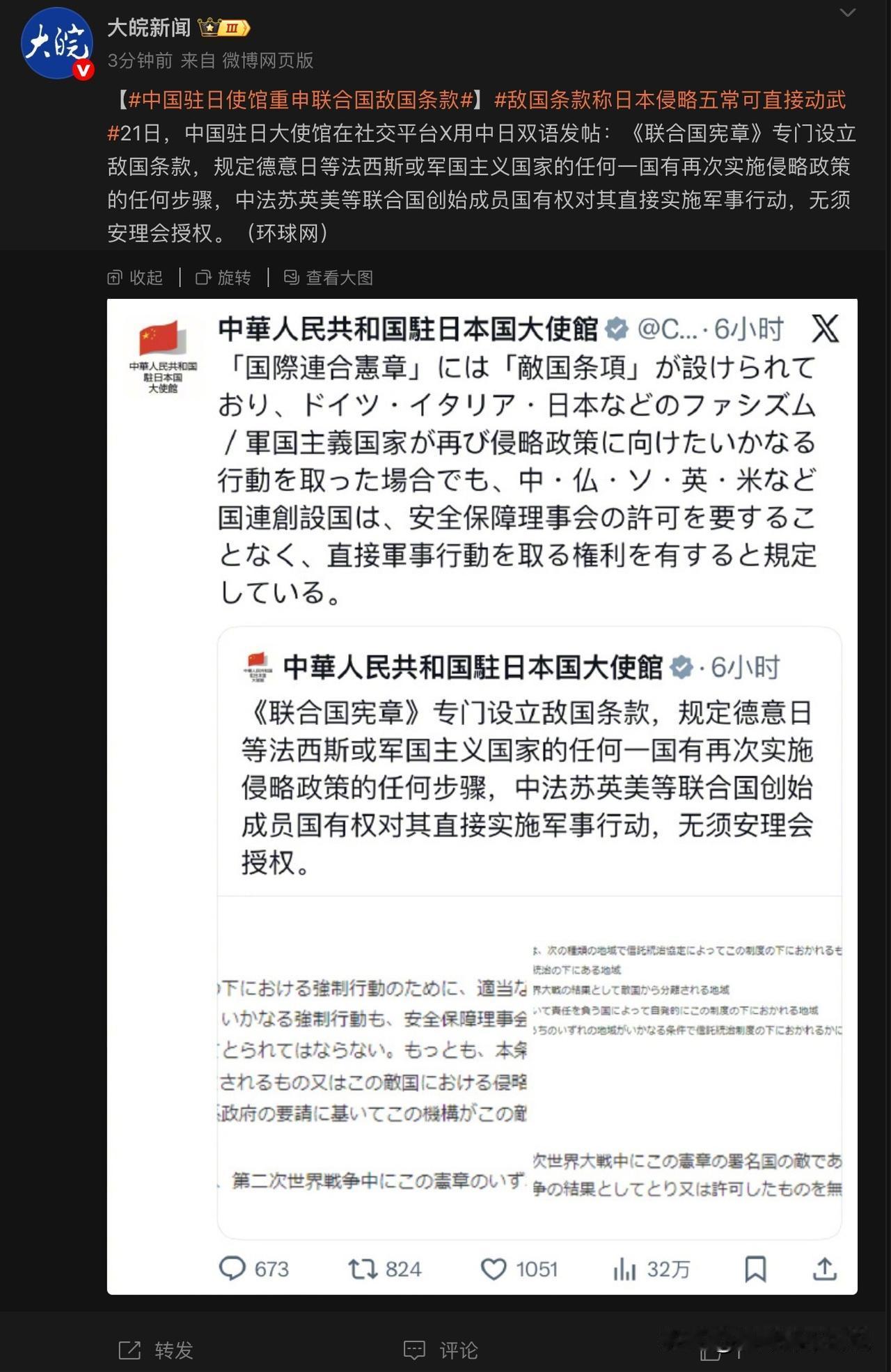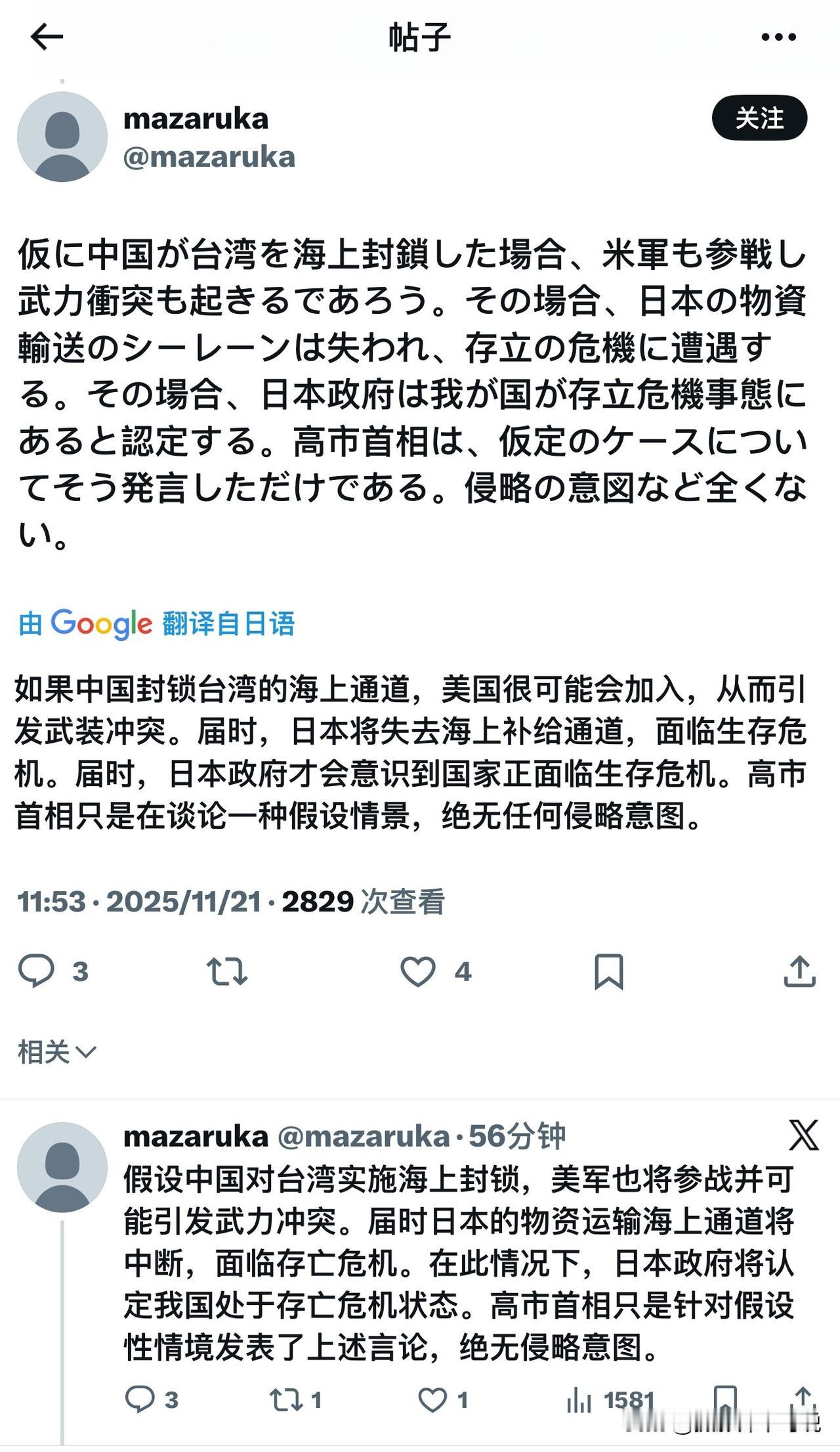 我驻日大使馆在X上发了一篇日语推文,一日本网友看不惯了,直接想出来强行解释。今早,这篇推文在互联网上传播开来,也直接快速登上热搜。推文内容如图,反正如果我是日本网友,看起来就有点心惊肉跳,仿佛小男孩和小胖子恐惧附体一般。所以,日本网友赶紧出来狡辩,直接先把美国拉下水。说台海一旦有事儿,美国很可能会介入,届时日本将失去海上补给通道,所以会面临生存危机。这个解释实在是太牵强了,欺负人家看不懂世界地图是不?稍微往外绕一绕不就可以继续补给了?所以,这个解释还不如不解释,只会让自己显得更加心虚!