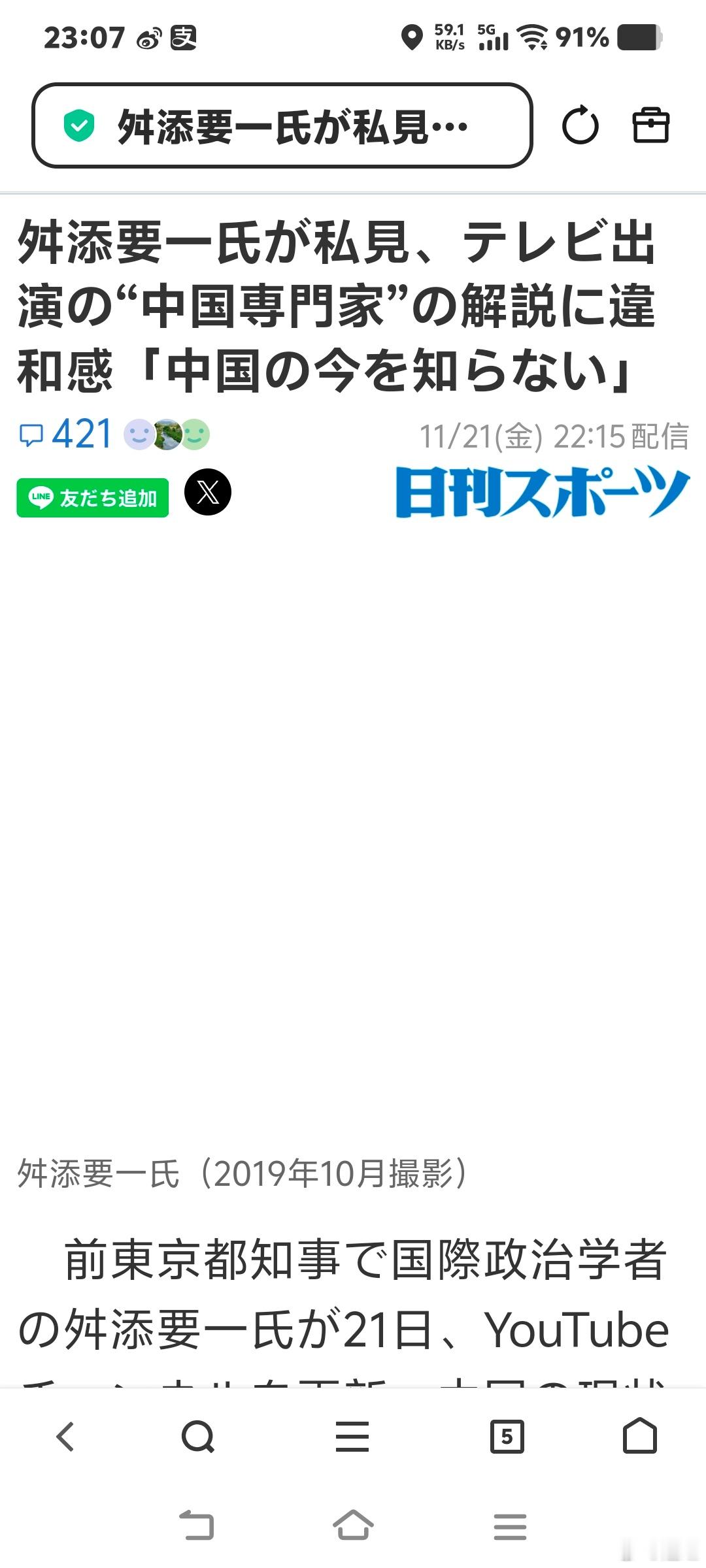 前东京都知事舛添要一痛批日本的那些所谓中国专家不学无术,胡说八道。目前看看,也就远藤誉老太太有点内容,这老太太属于小骂大帮忙型。一个劲地骂中国这个那个,显示自己不是亲中的,但是分析的时候说的其实都在点上,包括中国为什么生气,日本承诺的建交公报却现在搞这种蛀虫式诡辩。佳能研究所那个什么峰的,只能说凑合。至于近藤大介之流 也就去池袋吃吃中餐还行。