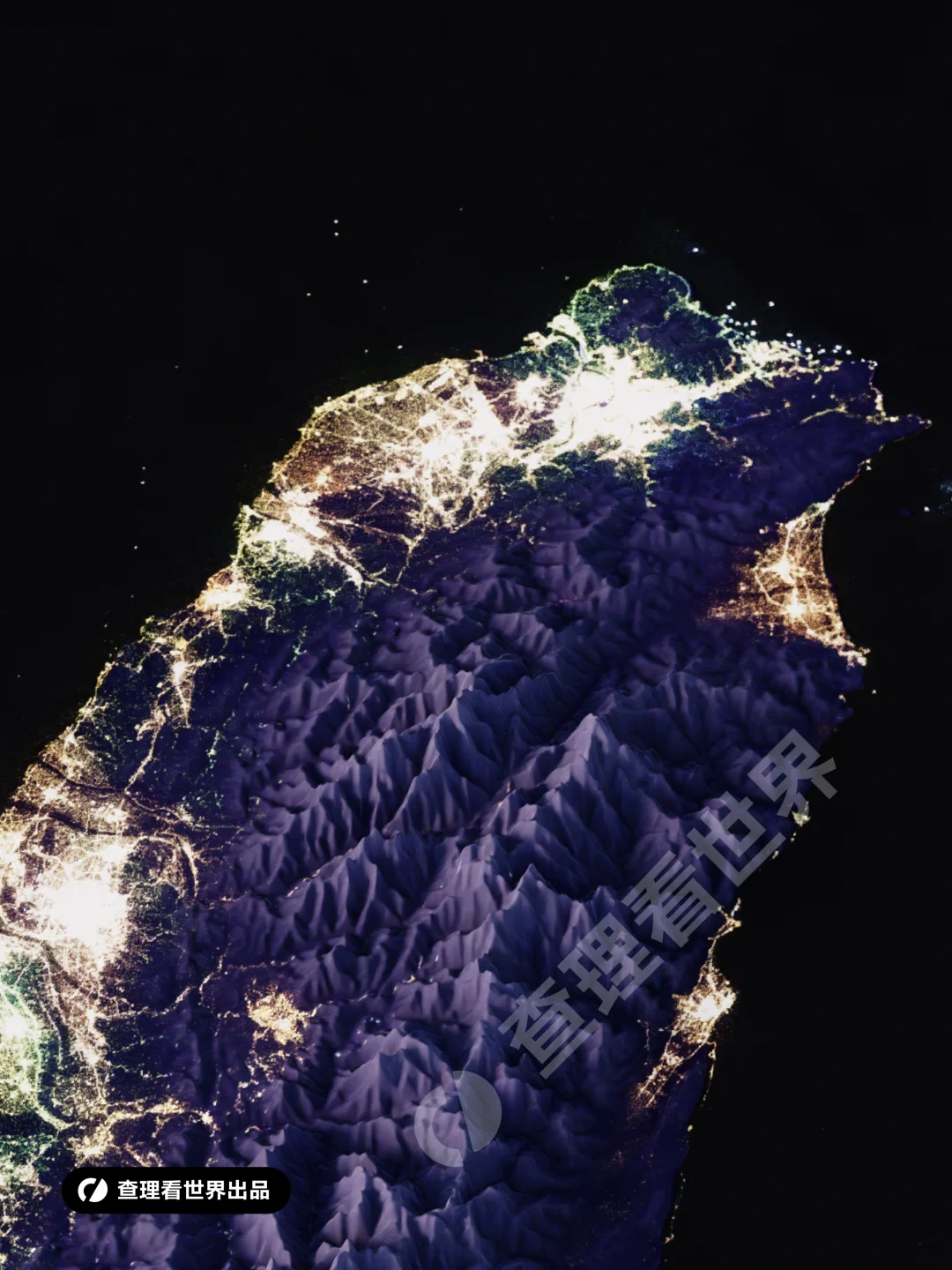 ★原创地图内容谢绝转载★ 台湾 地图 地理 灯光地图 台北 高清地图