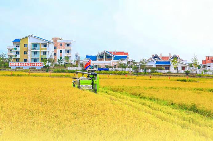 五谷丰登的丰饶季节来临了。 田野上讨人喜欢的稻穗沉沉地低垂下来。这并不是自然的恩惠。全国农业劳动者怀着以粮食增产的骄人成果为今年增光的心愿,春天和夏天勤勤恳恳,流下劳动汗珠,带来了喜人的丰收。 黄海南道载宁平原、延白平原等各地田野上,人们忙着进行秋收。 到处都是拖拉机、联合收割机、脱粒机等农机的轰隆声。各农场根据地区特点选择秋收时期,最大限度地动员和利用农机,连日提高秋收成绩。 农业劳动者全力进行秋收,随之秋收成果日益增大。