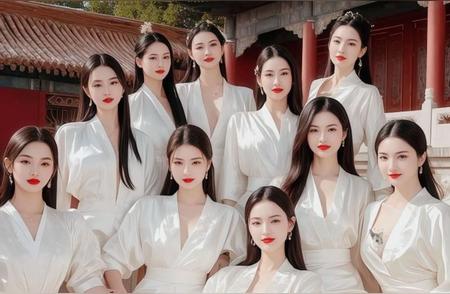 中国极品美女身着精美黑色修身皮衣,冷艳又秀丽。乌黑波浪长发垂落,精致五...