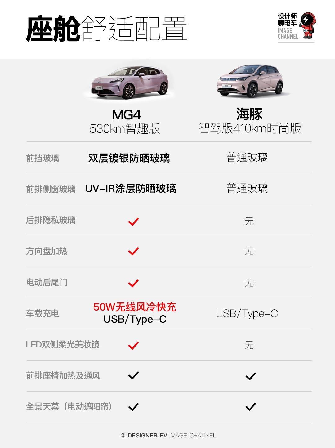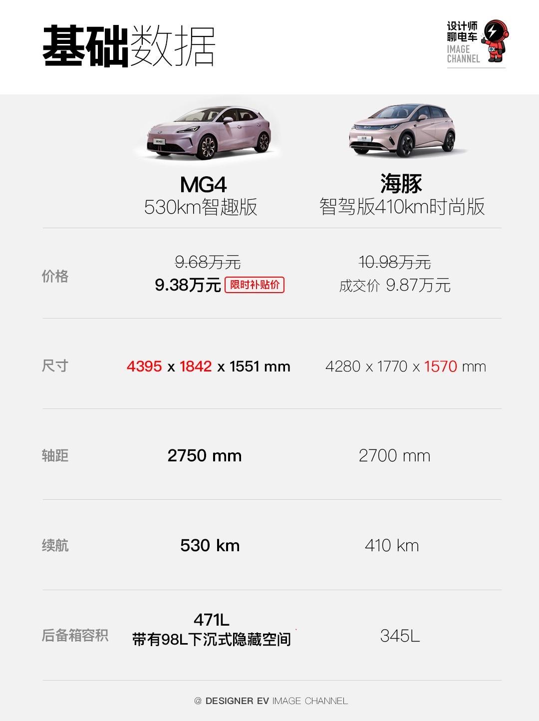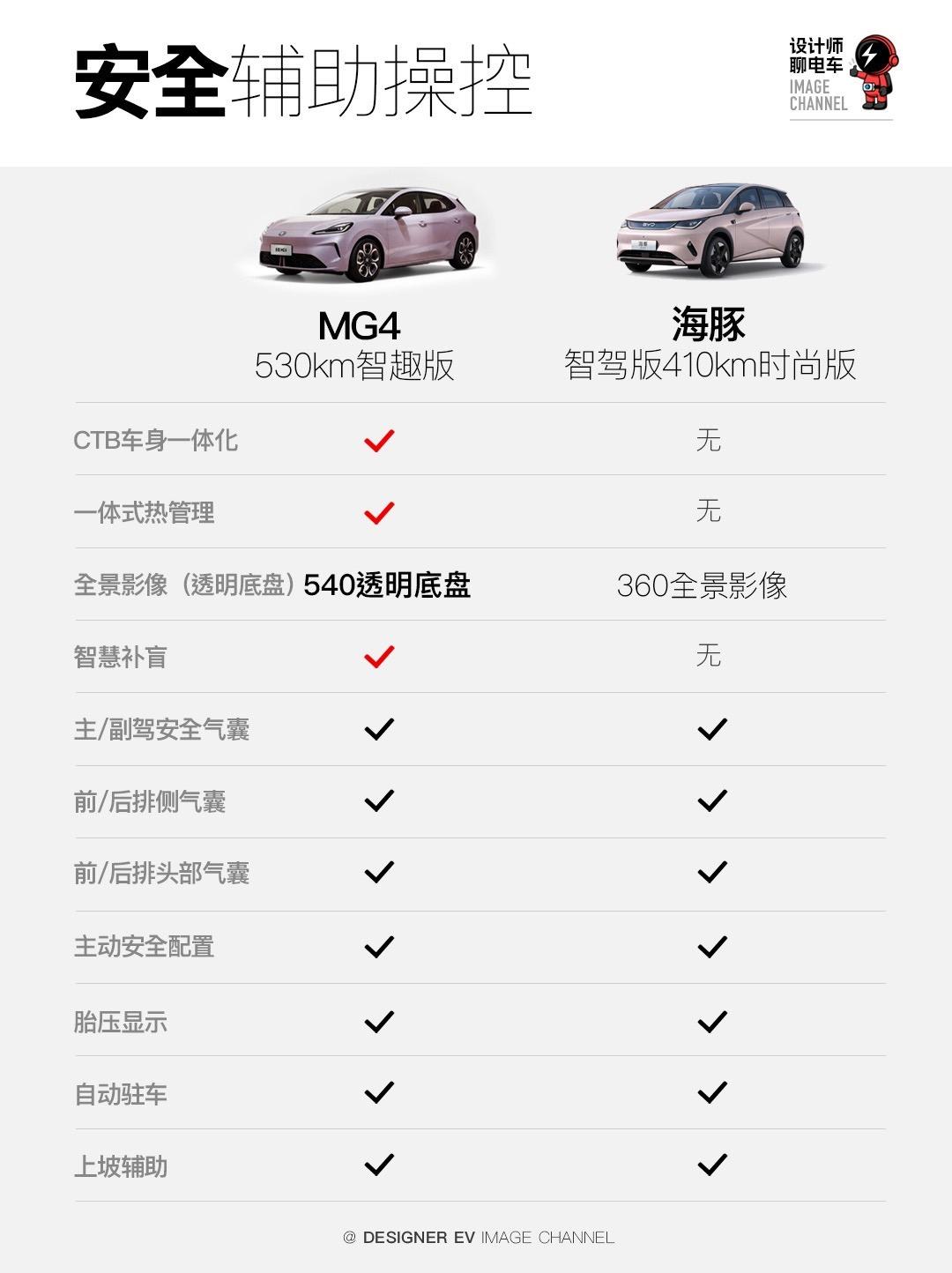而MG4 530km版本的直接对手就是比亚迪海豚,MG4 530智趣版和海豚410时尚版两款车型目前的价格都为9万出头,到底怎么选?我们比比看!