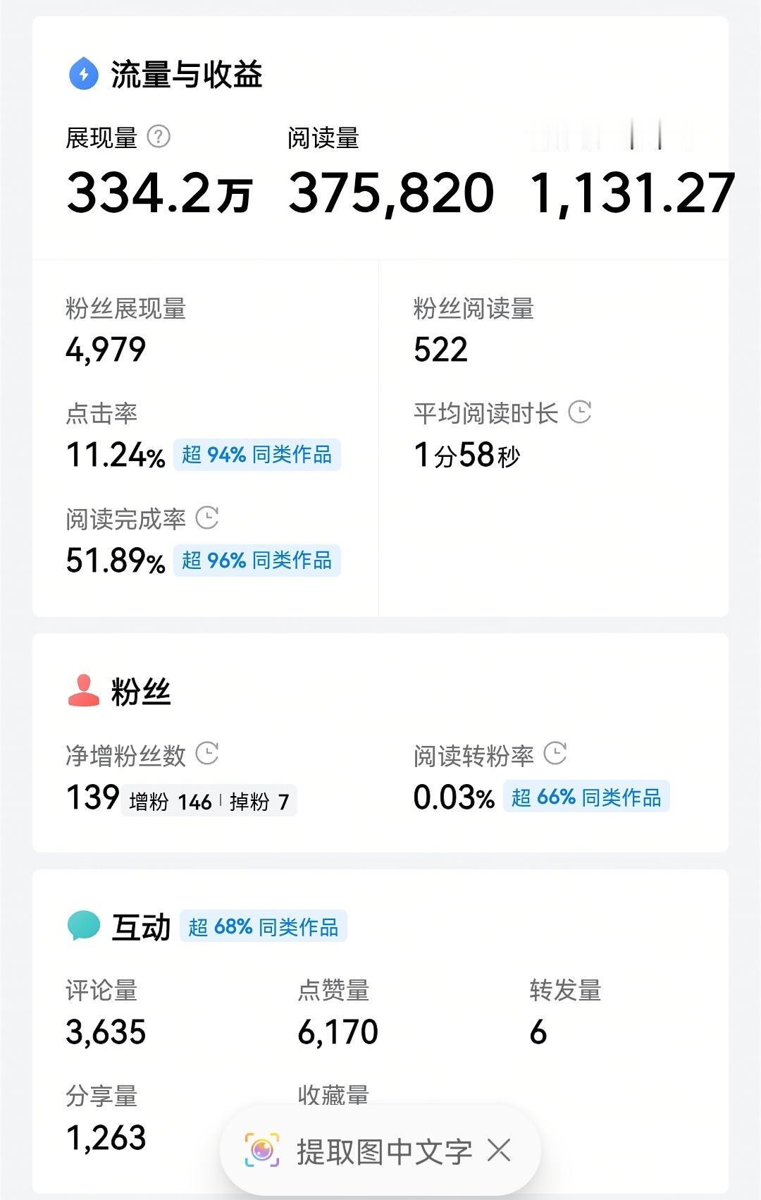 不知道大家发现没有, 现在要靠图文赚钱真的是太难了! 所以很多大咖停更了,也真的是正常的! 平台需要高质量的文章,但什么才是高质量呢,其实标准比较模糊!现在平台有两类人的流量比较高,一类是专门写自己怎么创作的,晒晒每天的收益是多少的。 另外一种就是退役的的大叔大妈发的一些情感类,生活类的。看似拉家常,平平无奇,但就是平台比较偏好! 总之一句话,大部分人都很难像以前那样了,归根到底平台的广告收入也变少,广告主投流也变少了,这才是根本啊!写作赚钱渠道 文字创作者困境