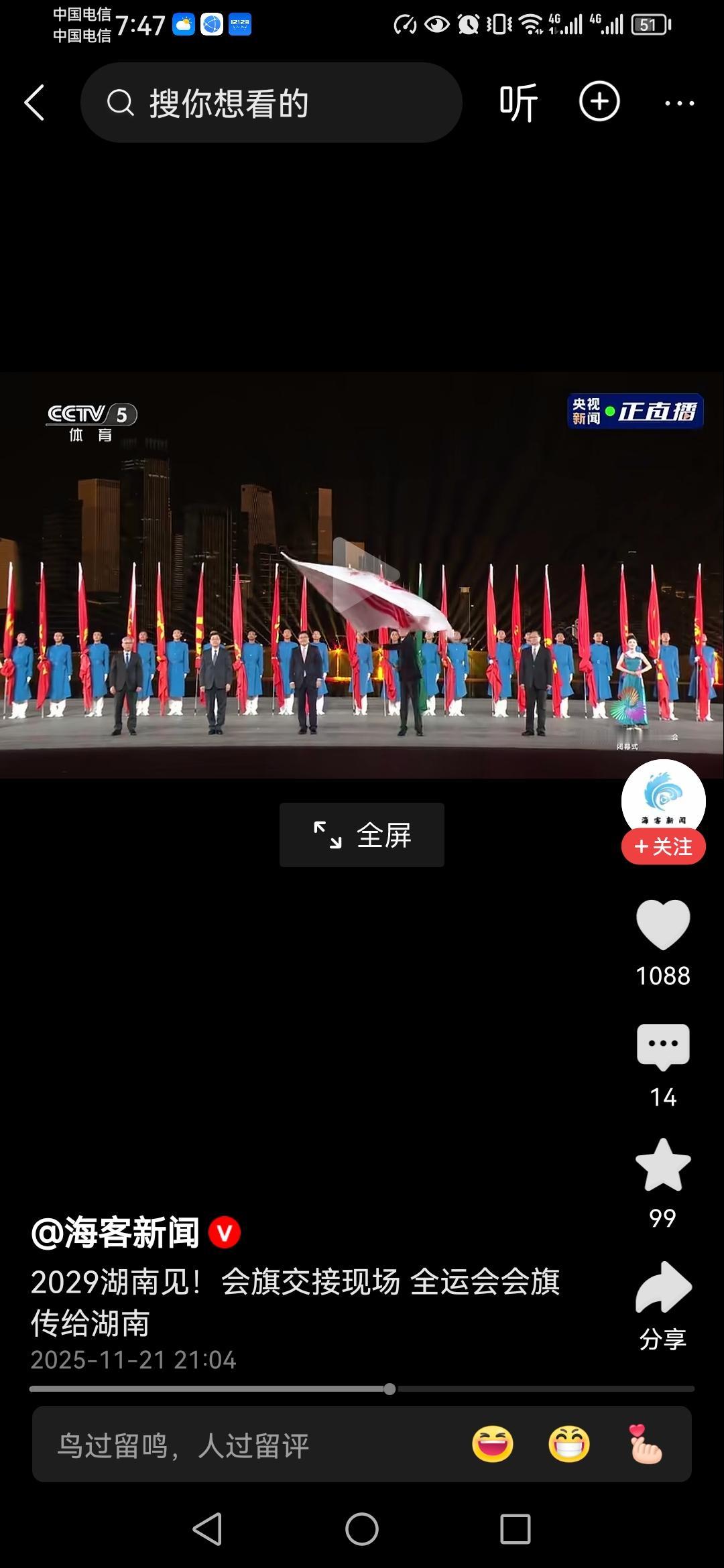 可能很多人不知道, 这次粤港澳全运会,其实就是按照奥运会的规格来办的!全运会闭幕式,会旗分别从粤港澳三地的领导手上传递完以后,再传给下一届2029年全运会举办地湖南手上! 这不是一次普通的交接,而是一种体育精神的交接,更是运动员的一次“新老交替”! 这次全运会结束以后,会有一大批不同体育类别的,我们非常熟悉的优秀运动员们会选择退役,苏炳添,马龙等等, 而下一代的优秀运动员们从这次全运会以后,就会接棒继续前进!全运会粤港澳 全运会开幕地
