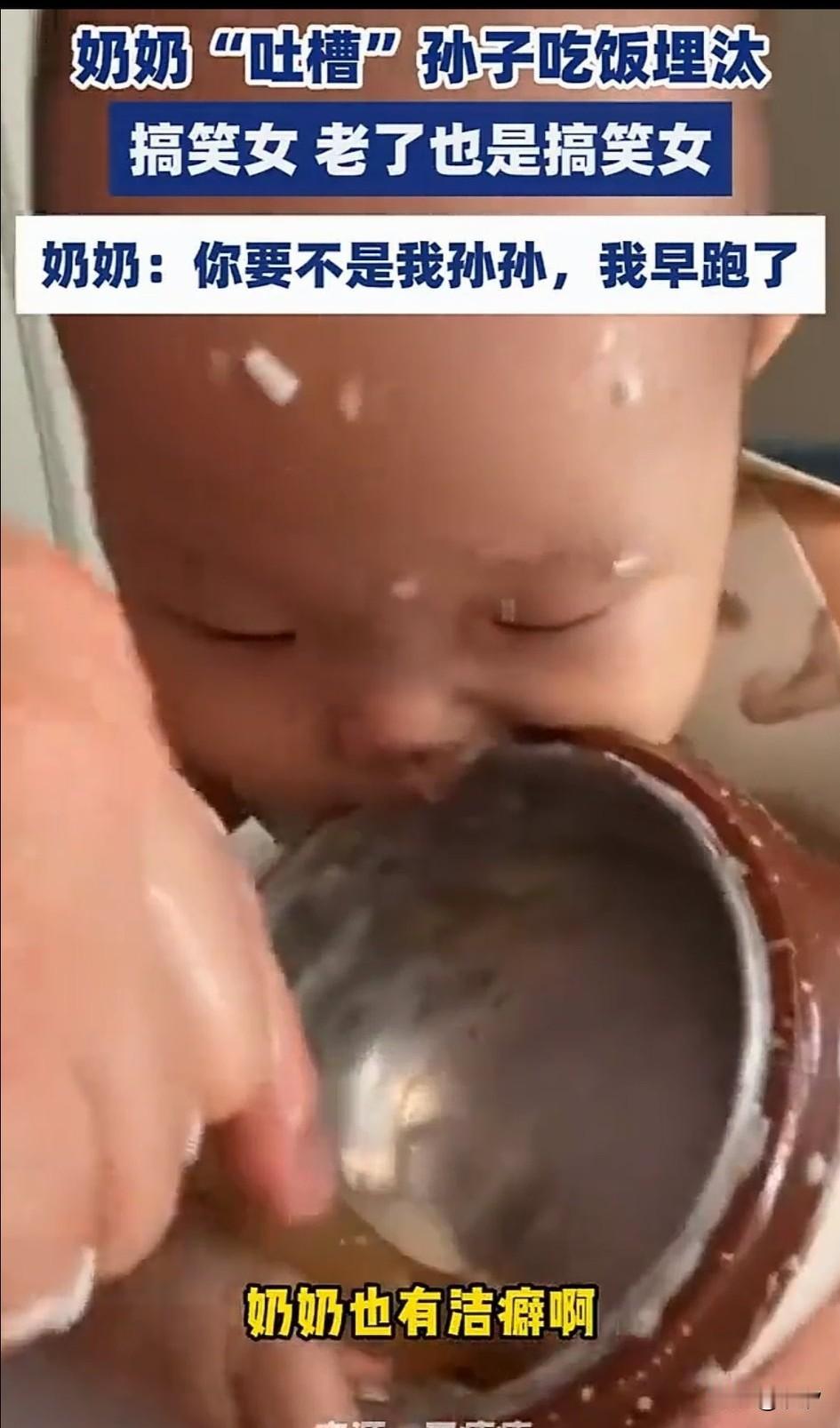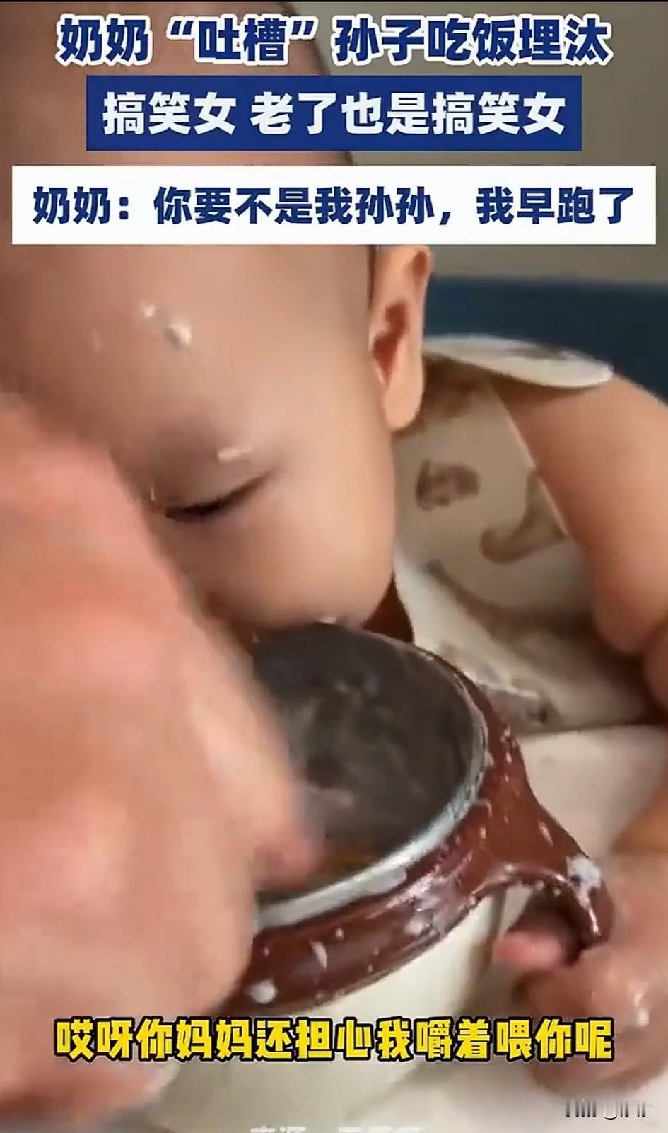 奶奶带孙子吃饭, 大孙子看到实物就非常兴奋, 吃的满脸都是, 奶奶有点儿嫌弃, 表示自己也是有洁癖的, 你妈妈还担心我嚼着喂你, 你看看到底是谁不卫生? 只见大孙子把一碗饭都吃完了, 手上脸上全是米粒, 可谓是手和嘴同时使用, 大孙子还真是个天生的干饭人, 奶奶也是对大孙子无语, 要不是亲奶奶她早跑了, 搞笑女,老了也是搞笑女, 看着奶奶吐槽自己的大孙子吃饭埋汰, 简直能把人逗乐, 大家对于奶奶吐槽大孙子吃饭埋汰怎么看? 孙子的暖心话 孙子的奶奶 奶奶真会哄孙子 孙子的表现 孙子的生活点滴 孙子的童年回忆