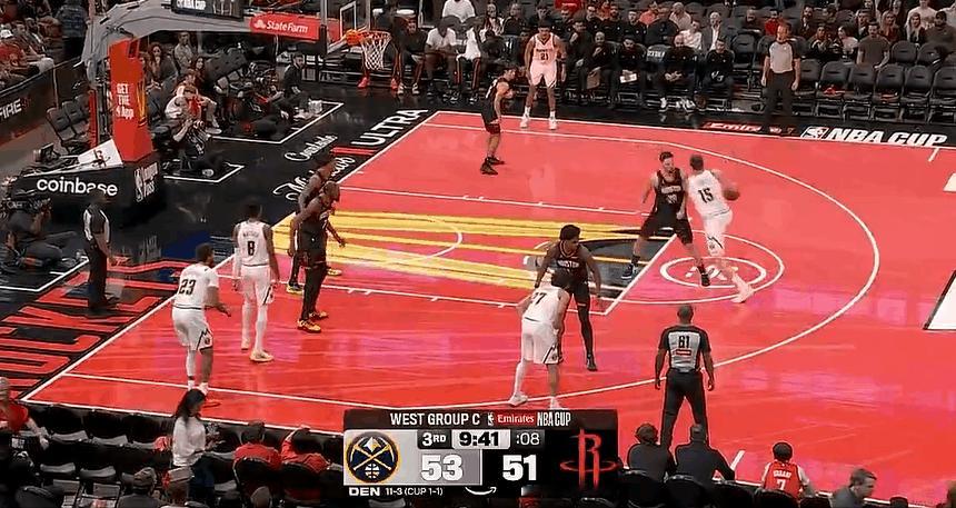 强!火箭双塔在约老师面前就是摆设! 在今天NBA常规赛掘金对阵火箭的第三节比赛中,约基奇运球加速轻松过掉申京后迎着小史密斯补防直接起飞完成单手劈扣! 今天火箭引以为傲的防线被约老师打得稀烂,申京与约基奇相比,确实要逊色不少!