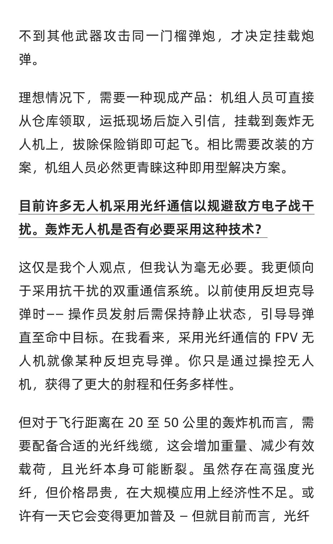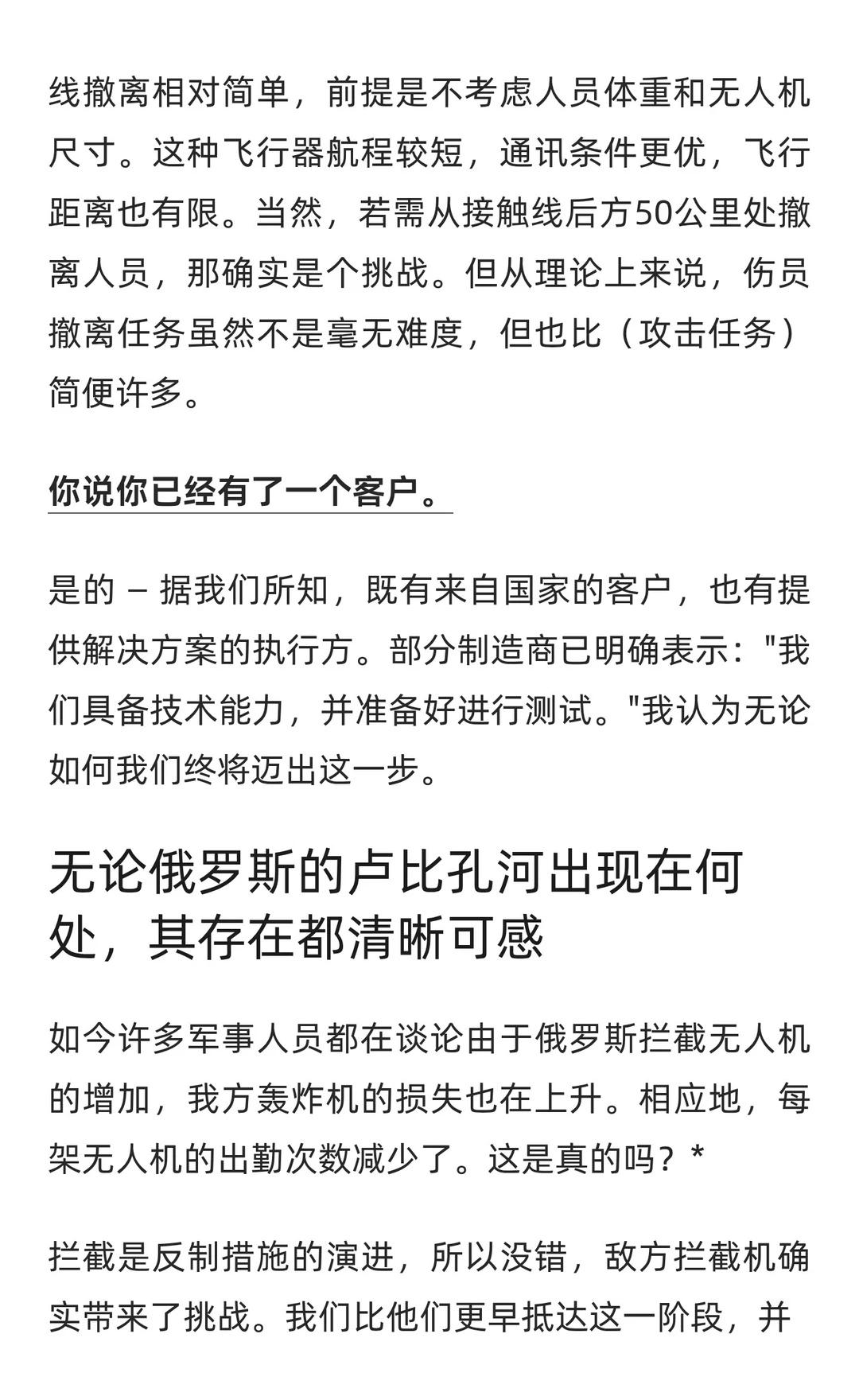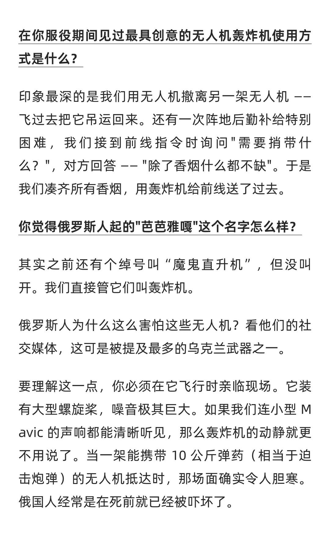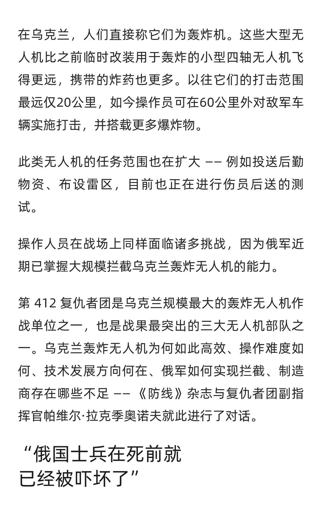 关于乌方“芭芭雅嘎”轰炸无人机应用的访谈 这是一篇关于乌克兰第412"复仇者"无人机团副指挥官帕维尔·拉克季奥诺夫的访谈,核心内容围绕乌克兰武装部队使用的重型轰炸无人机(绰号"芭芭雅嘎")的现状、挑战与发展。 军事 无人机 俄乌战争 无人机驾驶