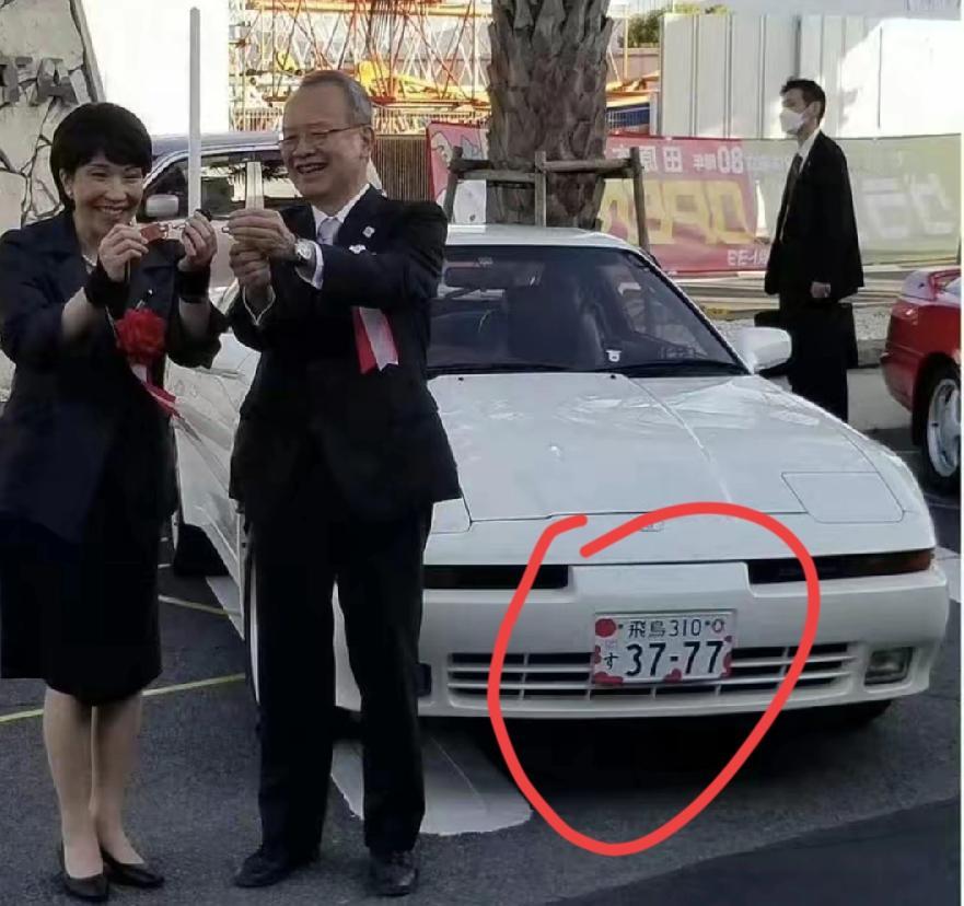 高市早苗座驾车牌37—77,1937年77事变!把侵华刻在车牌上了!这是高市早苗的私人车牌,没当首相前使用20多年了,换了很多辆车,可是车牌一直没换,都是37—77,可见高市早苗多钟爱这个号码!是巧合吗?如果真是巧合,那真是巧她娘给巧开门,巧到家了!可见高市早苗就是顽固分子,刻在基因里了!