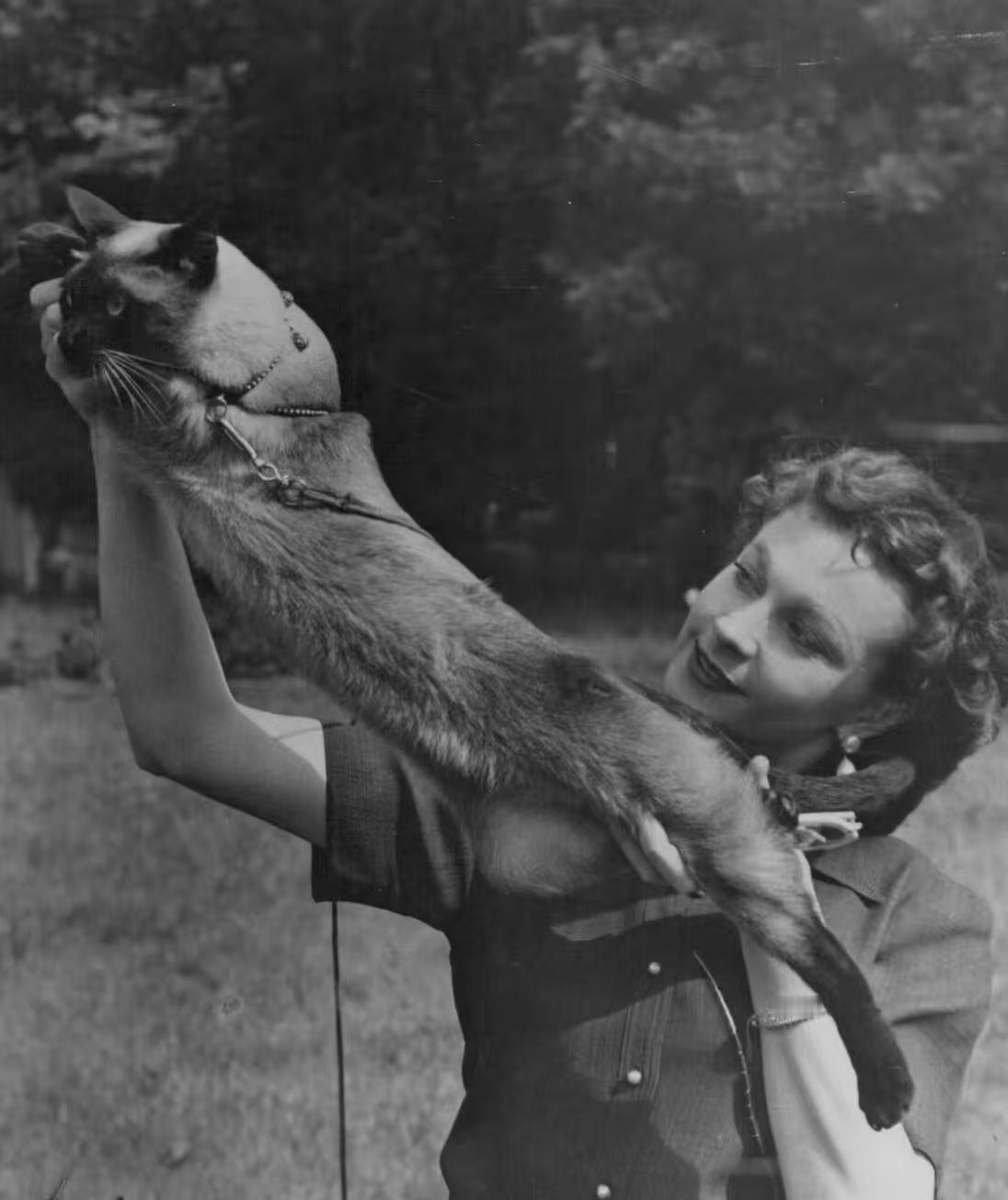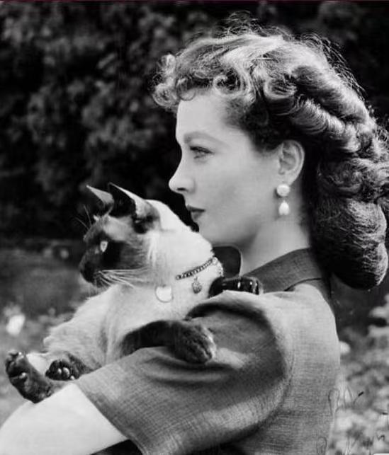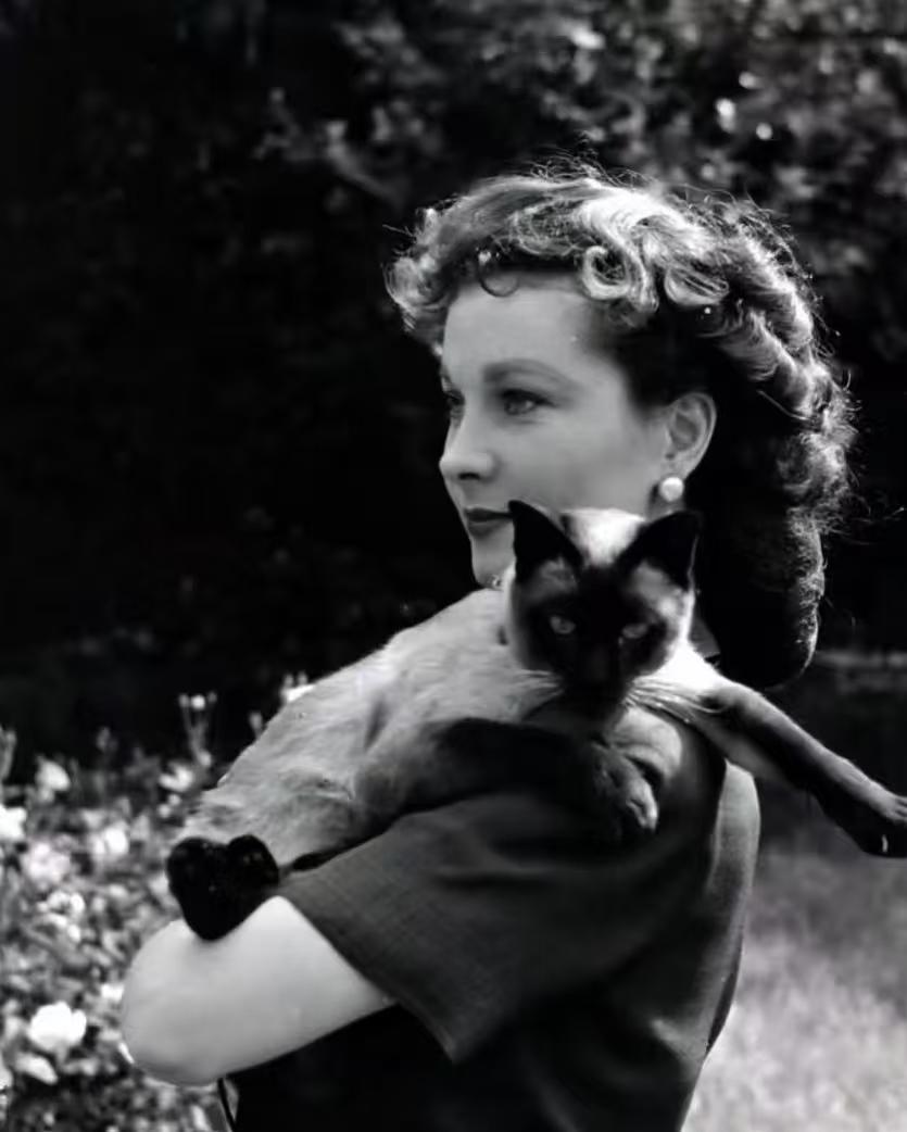 费雯·丽与暹罗猫“纽波”嬉戏 摄影师莱斯利·贝克1947年[玫瑰]