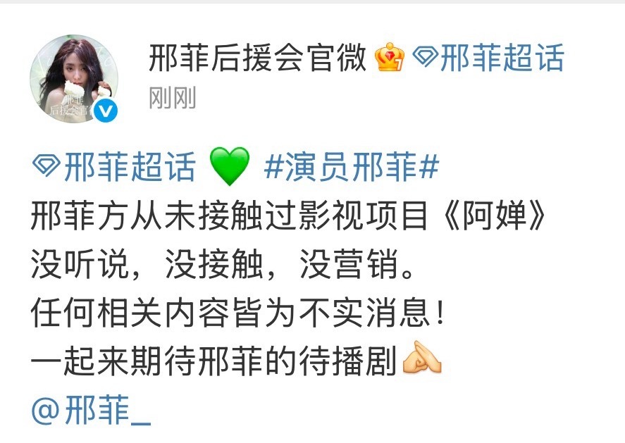 邢菲后援会发文称从未接触过《阿禅》,没听说,没接触,没营销。之前这部剧网传是林一、邢菲在《致我们暖暖的小时光》后的二搭。今日《阿禅》官博已开通,现在的网传阵容是林一、艾米。