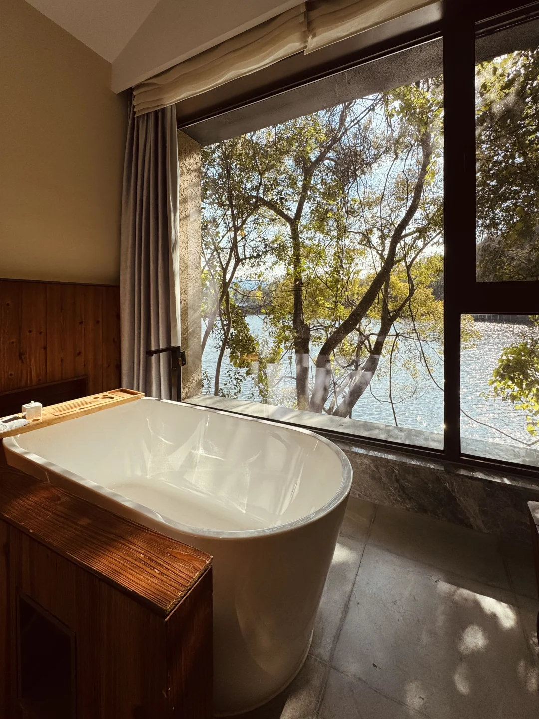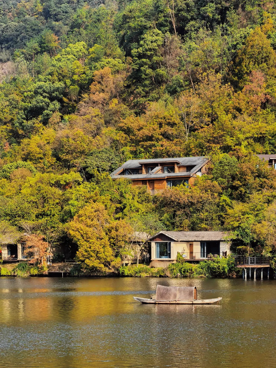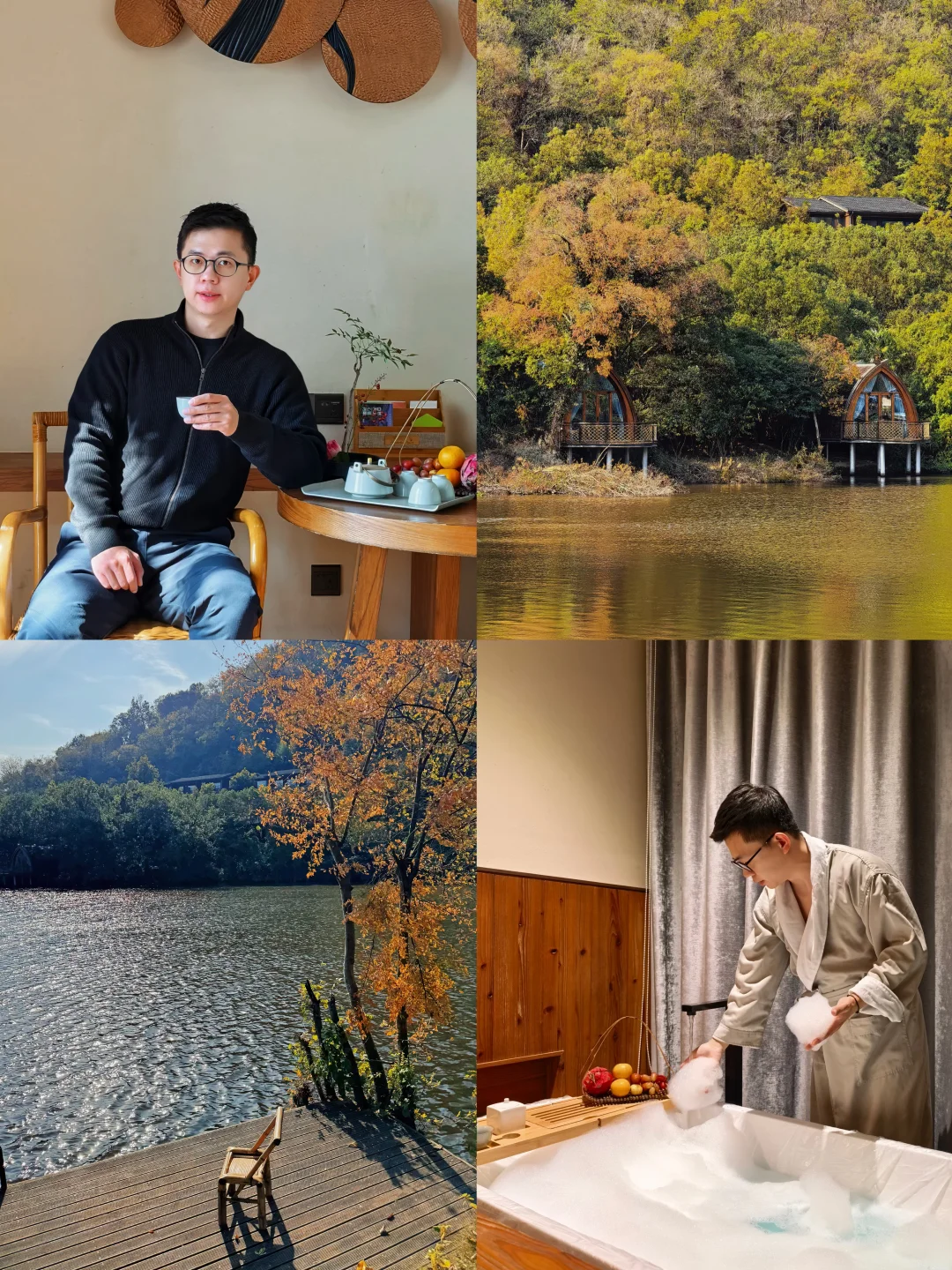 这两天从上海自驾大概 3 小时,导航一路往山里开,车窗外从城市楼景慢慢变成水汽氤氲的富春江——这趟周末逃离挺值得。 🏨:杭州富春芳草地臻品之选酒店。 🏡 垂钓小屋一卧室套房 这次住了几种房型,种草垂钓小屋一卧室套房。 • 它是一栋靠湖的小房子,拥有了湖边别墅之感。 • 房间分为客厅+卧室,格局很舒服。 • 床边浴缸太加分,真的很解压。🛁 • 消毒柜的配备也是少见 • 湖景露台 & 垂钓台 棒! 下午在露台晒太阳喝茶,发发呆;想垂钓的话,出门几步就是湖,一整个“松弛生活”被安排得明明白白。 [自拍R] 散步路线秋意浓 从小屋走去餐厅、绕湖步行我太喜欢了: 穿过小树林,踩着微微起伏的木栈道,湖边的风轻轻拂过脸。 秋天把颜色悄悄晕开,金黄、深红交织在眼前, 走着走着,就像步入一幅被雾气轻轻托起的山水画。 [咖啡R] 无边泳池 & 新月集咖啡 酒店的无 边泳池真的很适合拍照,面朝山水。 泳池下方就是 新月集咖啡店,那天我点了杯瑰夏手冲,在阳光里发呆吃午餐。 在这种被山林包围的地方喝到不错的手冲,挺惊喜。 🚗 住下来之后再说说酒店本身 房型体验完,再补充一些关于酒店的细节: • 酒店是 度假村形式,房型选择多,酒店园区内有 电瓶车接送,住宿动线很自如。 • 中餐厅的土菜很不错,冬笋、醉蟹、鱼头汤跟这个秋冬很配。 • 烟火气息浓郁的早餐,建德豆腐包好吃! • 德胧 × 万豪的双品牌合作,挂牌臻品之选后,也算填补了万豪在“山水度假型酒店”这一类的空缺。整体氛围偏自然系,而不是商务酒店那种感觉。 就在露台坐坐、泡泡澡、随便散散步,宅酒店慢生活。非要说什么不好,就是离上海远点。 如果你也想找一个离城市不远、住进富春山居之感,那快来~