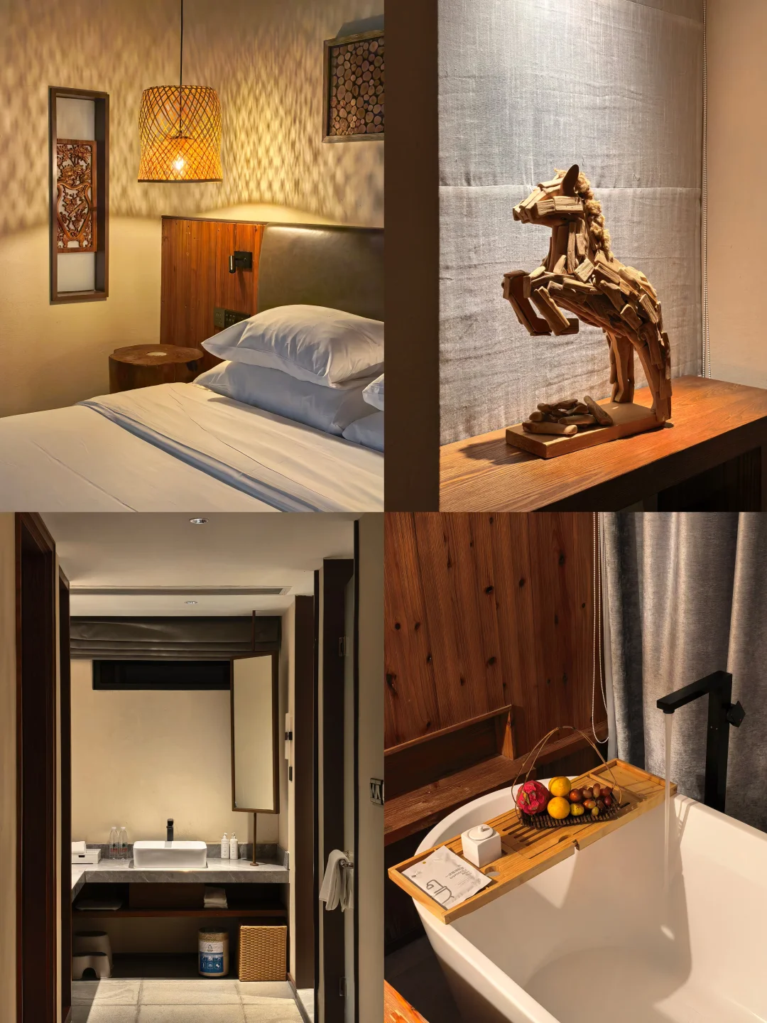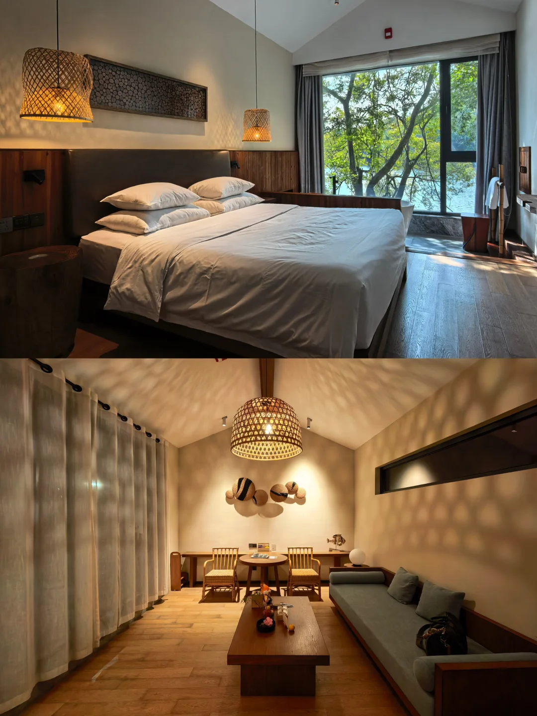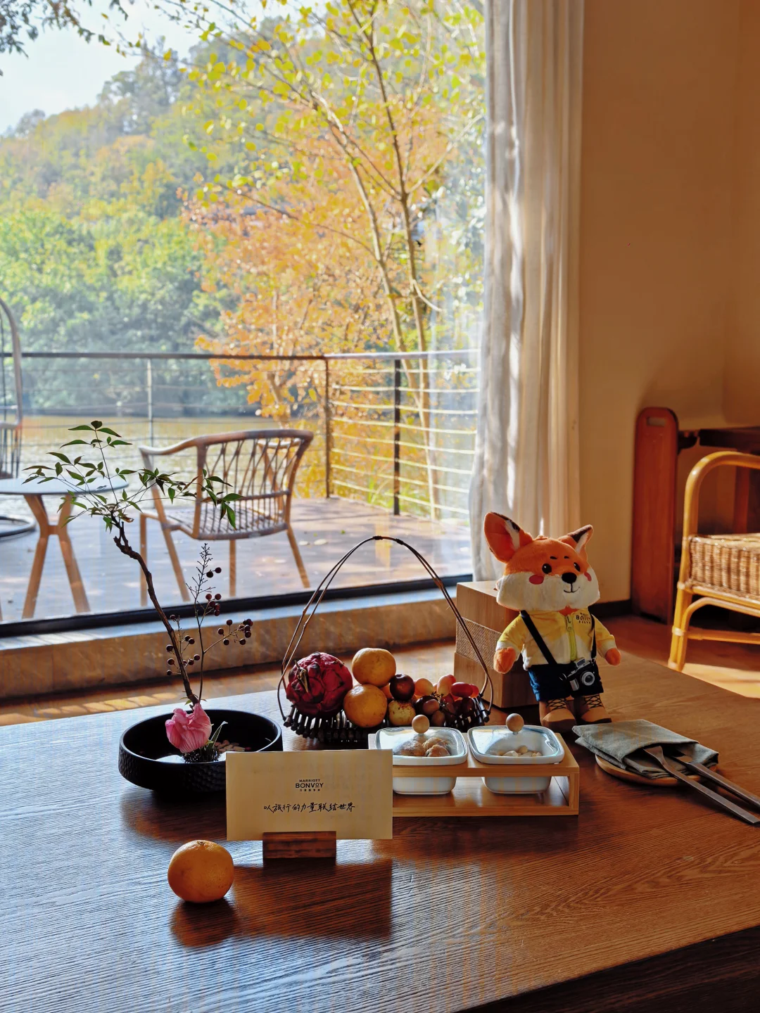 这两天从上海自驾大概 3 小时,导航一路往山里开,车窗外从城市楼景慢慢变成水汽氤氲的富春江——这趟周末逃离挺值得。 🏨:杭州富春芳草地臻品之选酒店。 🏡 垂钓小屋一卧室套房 这次住了几种房型,种草垂钓小屋一卧室套房。 • 它是一栋靠湖的小房子,拥有了湖边别墅之感。 • 房间分为客厅+卧室,格局很舒服。 • 床边浴缸太加分,真的很解压。🛁 • 消毒柜的配备也是少见 • 湖景露台 & 垂钓台 棒! 下午在露台晒太阳喝茶,发发呆;想垂钓的话,出门几步就是湖,一整个“松弛生活”被安排得明明白白。 [自拍R] 散步路线秋意浓 从小屋走去餐厅、绕湖步行我太喜欢了: 穿过小树林,踩着微微起伏的木栈道,湖边的风轻轻拂过脸。 秋天把颜色悄悄晕开,金黄、深红交织在眼前, 走着走着,就像步入一幅被雾气轻轻托起的山水画。 [咖啡R] 无边泳池 & 新月集咖啡 酒店的无 边泳池真的很适合拍照,面朝山水。 泳池下方就是 新月集咖啡店,那天我点了杯瑰夏手冲,在阳光里发呆吃午餐。 在这种被山林包围的地方喝到不错的手冲,挺惊喜。 🚗 住下来之后再说说酒店本身 房型体验完,再补充一些关于酒店的细节: • 酒店是 度假村形式,房型选择多,酒店园区内有 电瓶车接送,住宿动线很自如。 • 中餐厅的土菜很不错,冬笋、醉蟹、鱼头汤跟这个秋冬很配。 • 烟火气息浓郁的早餐,建德豆腐包好吃! • 德胧 × 万豪的双品牌合作,挂牌臻品之选后,也算填补了万豪在“山水度假型酒店”这一类的空缺。整体氛围偏自然系,而不是商务酒店那种感觉。 就在露台坐坐、泡泡澡、随便散散步,宅酒店慢生活。非要说什么不好,就是离上海远点。 如果你也想找一个离城市不远、住进富春山居之感,那快来~