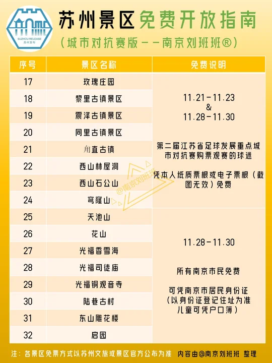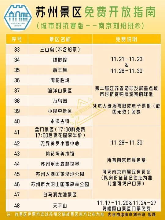 💥江苏省足球发展重点城市对抗赛专属福利又来啦,苏州景区免费对外开放啦!
